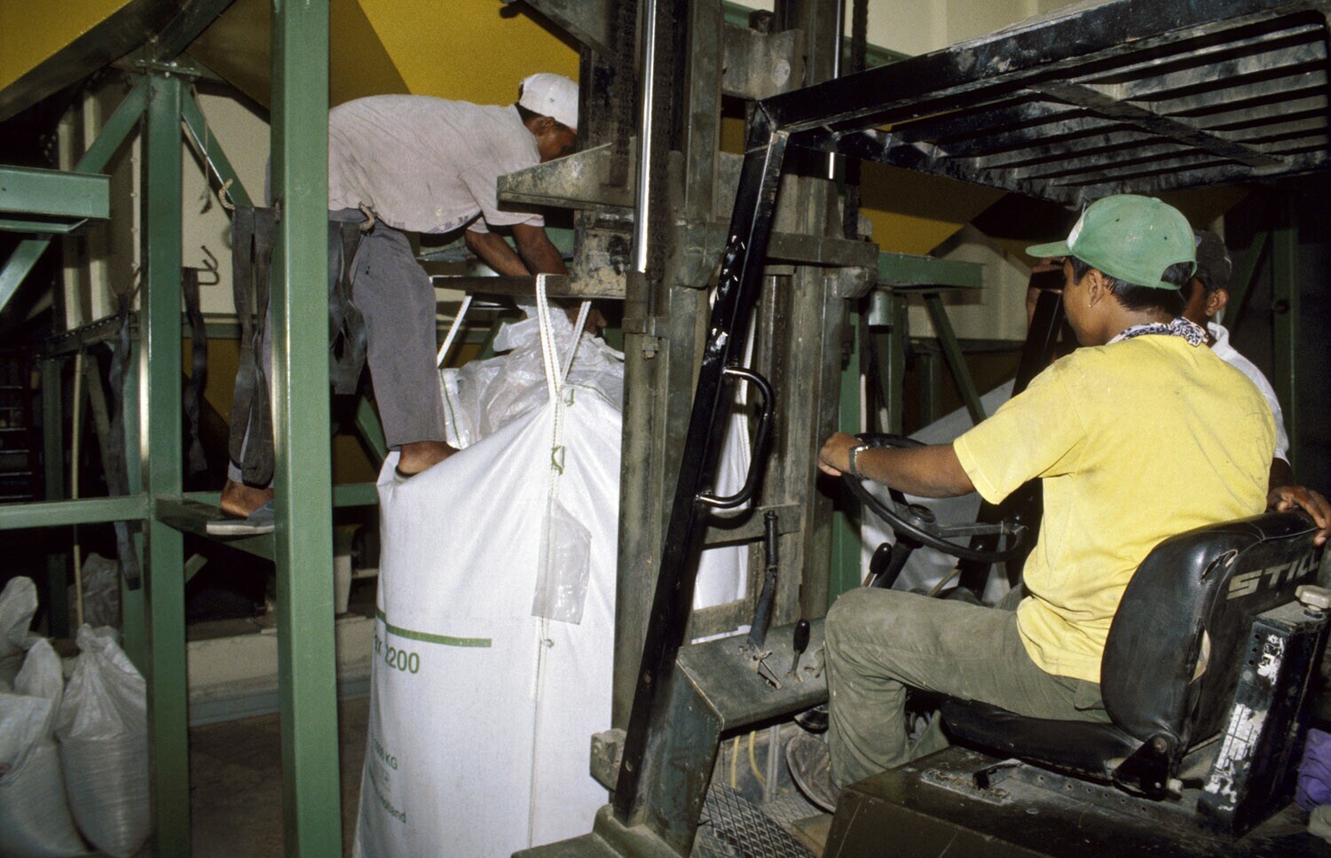 Nieuw Nickerie, vullen van 1000 kg zakken