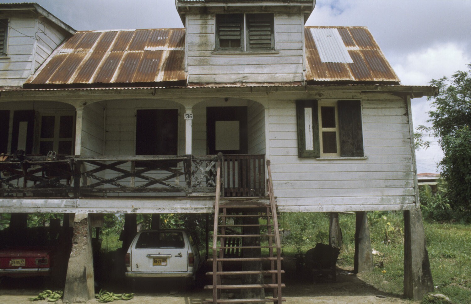 Richting Nieuw Amsterdam, oude plantage woningen; nu bewoond door javanen