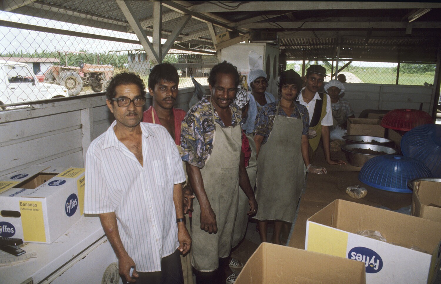 Uitkijk, ten zuidwesten van Paramaribo; bananenplantage Surland; etenbereiden in de keuken voor de lunch voor werknemers