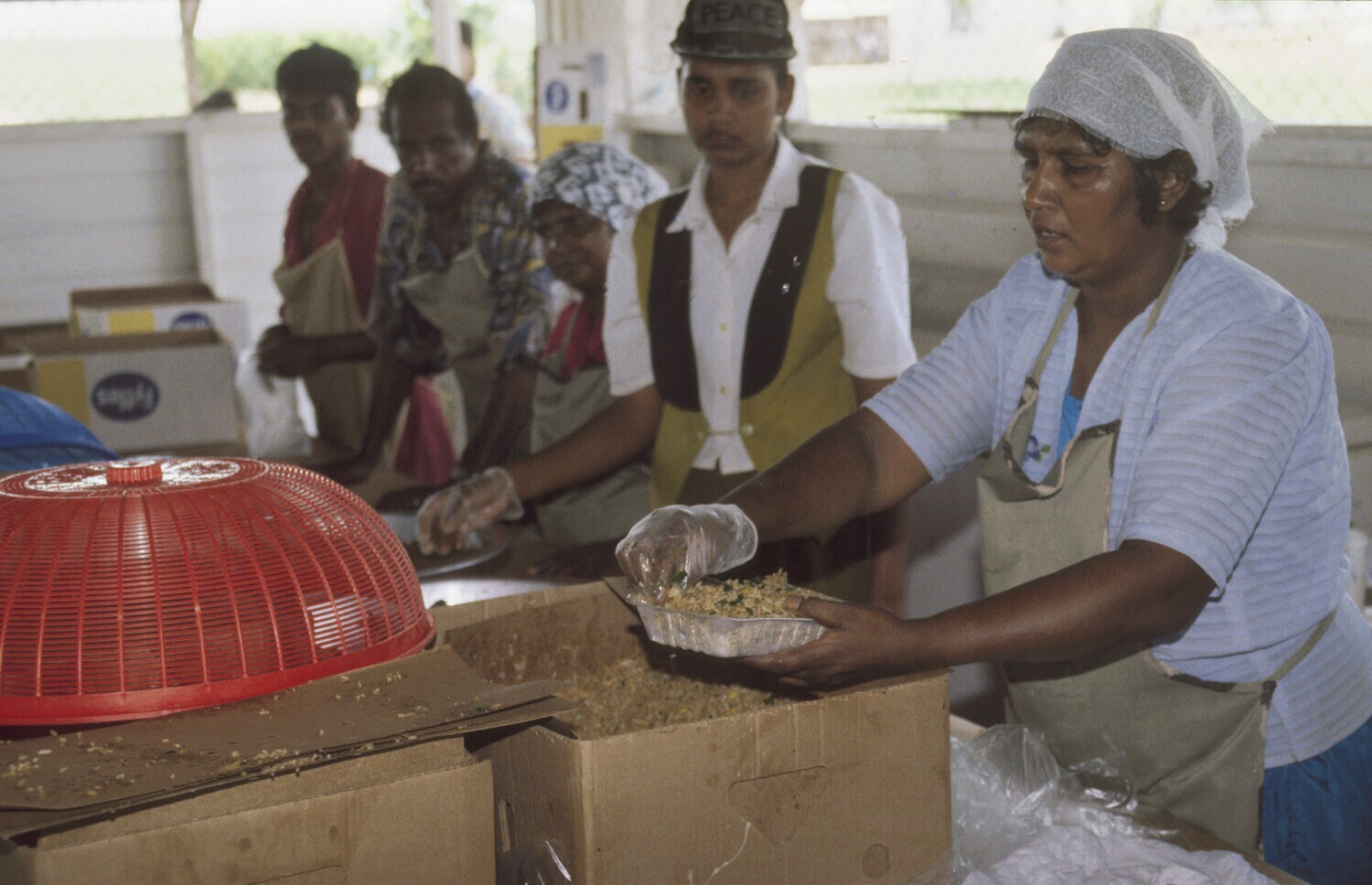 Uitkijk, ten zuidwesten van Paramaribo; bananenplantage Surland; etenbereiden in de keuken voor de lunch voor werknemers
