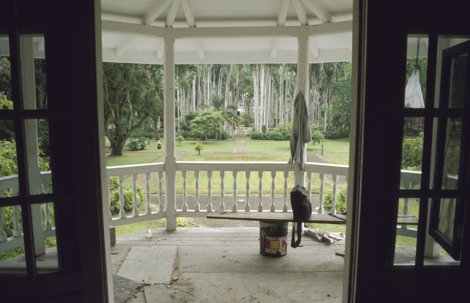 Paramaribo; vanuit het paleis zicht op de palmentuin (achterkant paleis)
