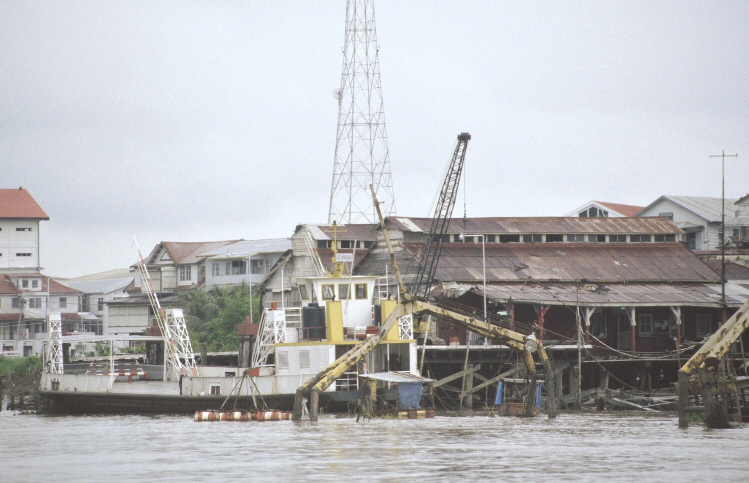 Paramaribo; vanaf het water; kade met aanlegsteiger voor grote veerpont