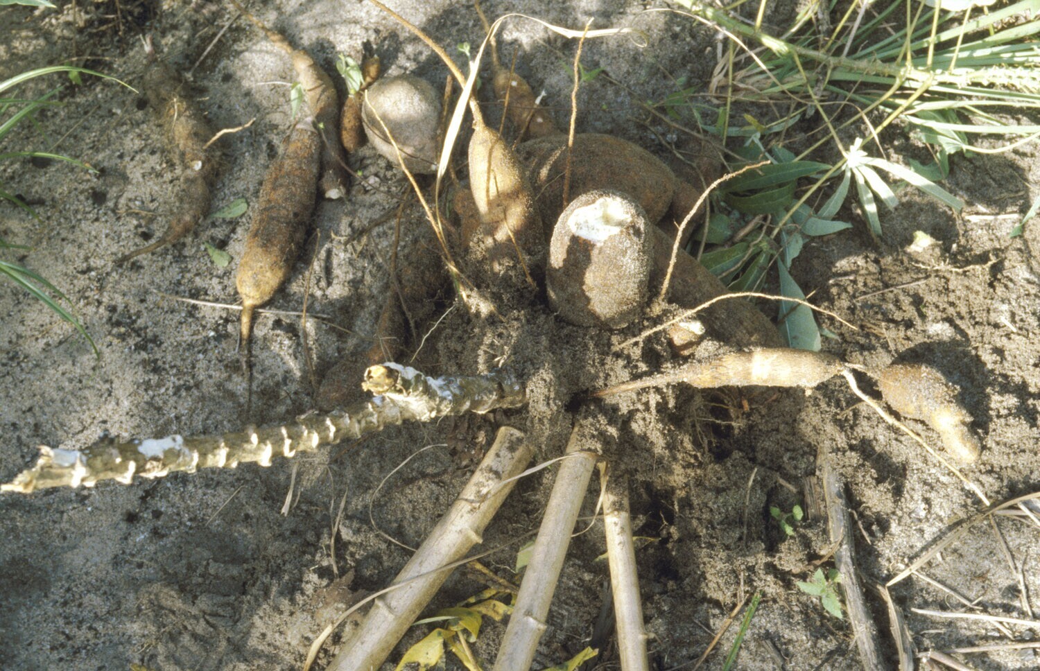 Galibi, Marowijnerivier; cassave; oogst; detail losgemaakt wortel