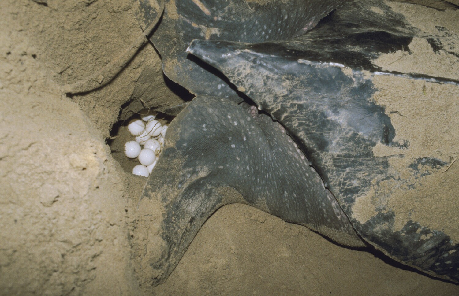 Frans Guyana, kust, zeeschildpadden komen aan land om eieren te leggen