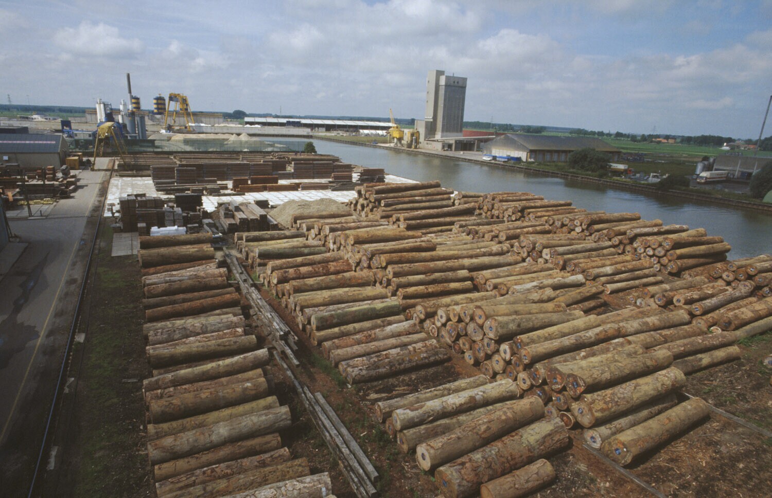 Houtopslag bij houtverwerkingsbedrijf Bijma in Kampen, Nederland