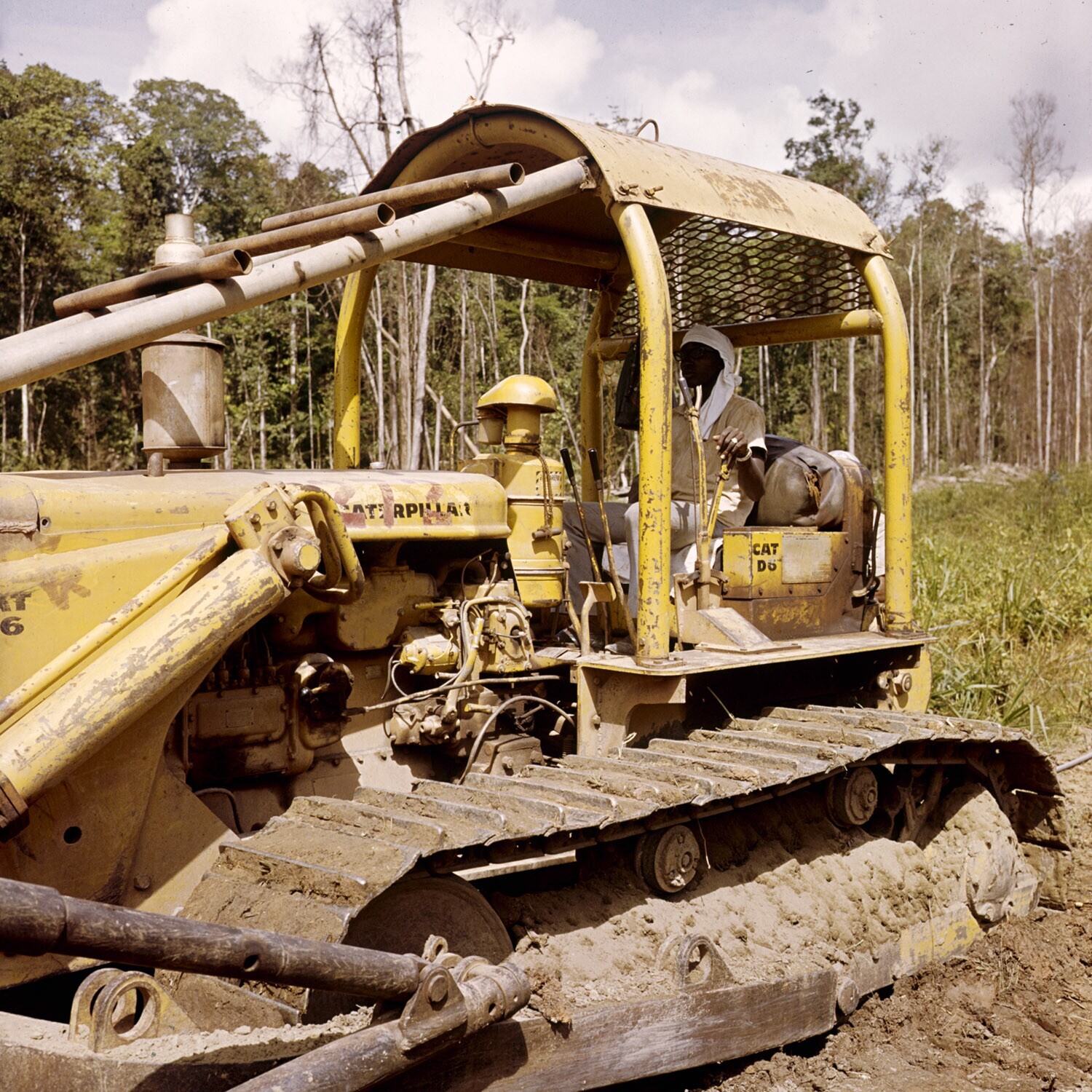 Brokopondo, Affobakkadam. Aanleg hoogspanningsleiding.