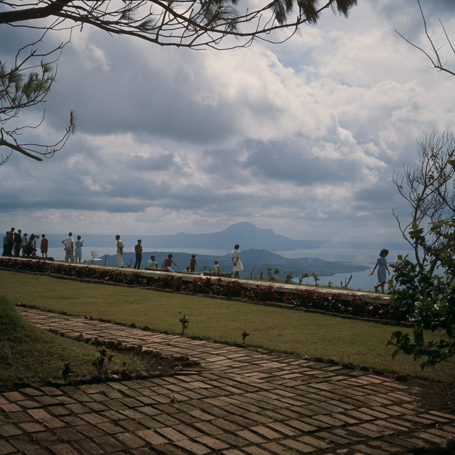 Belangstelling van de bevolking voor het actieve vulkaaneiland Taal in het Tagaytay meer, Luzon