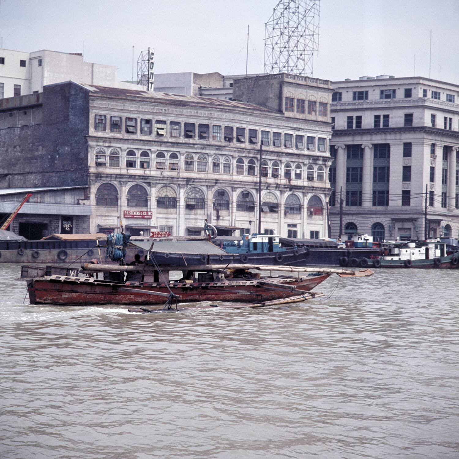 De bankgebouwen aan de Muelle del Banco National op de voorgrond de Pasig rivier, Birondo area, Manila, Rizal provincie, Luzon.