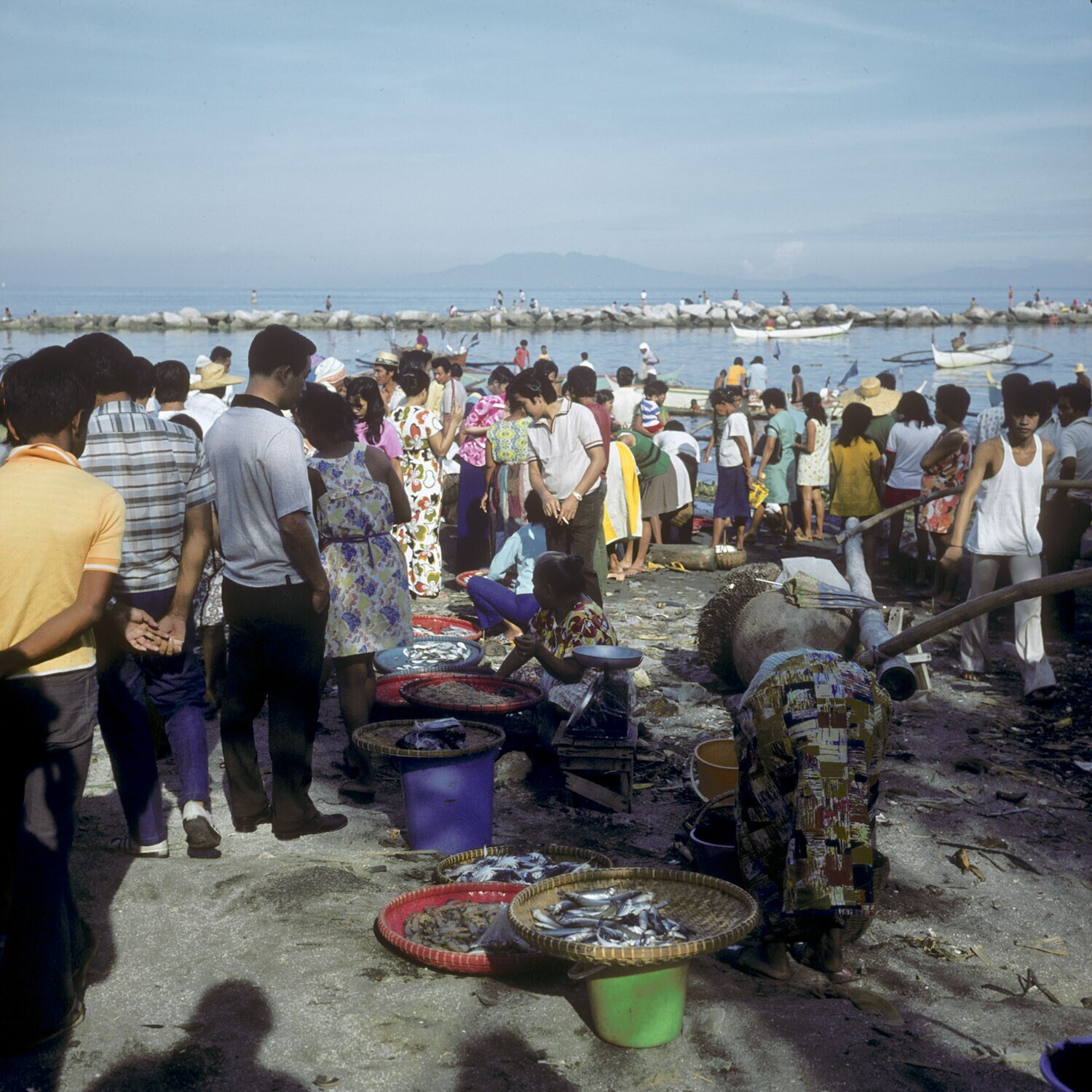 Verkoop van vis bij de 'vissershaven' aan de Roxas boulevard, Manila, Rizal provincie, Luzon.