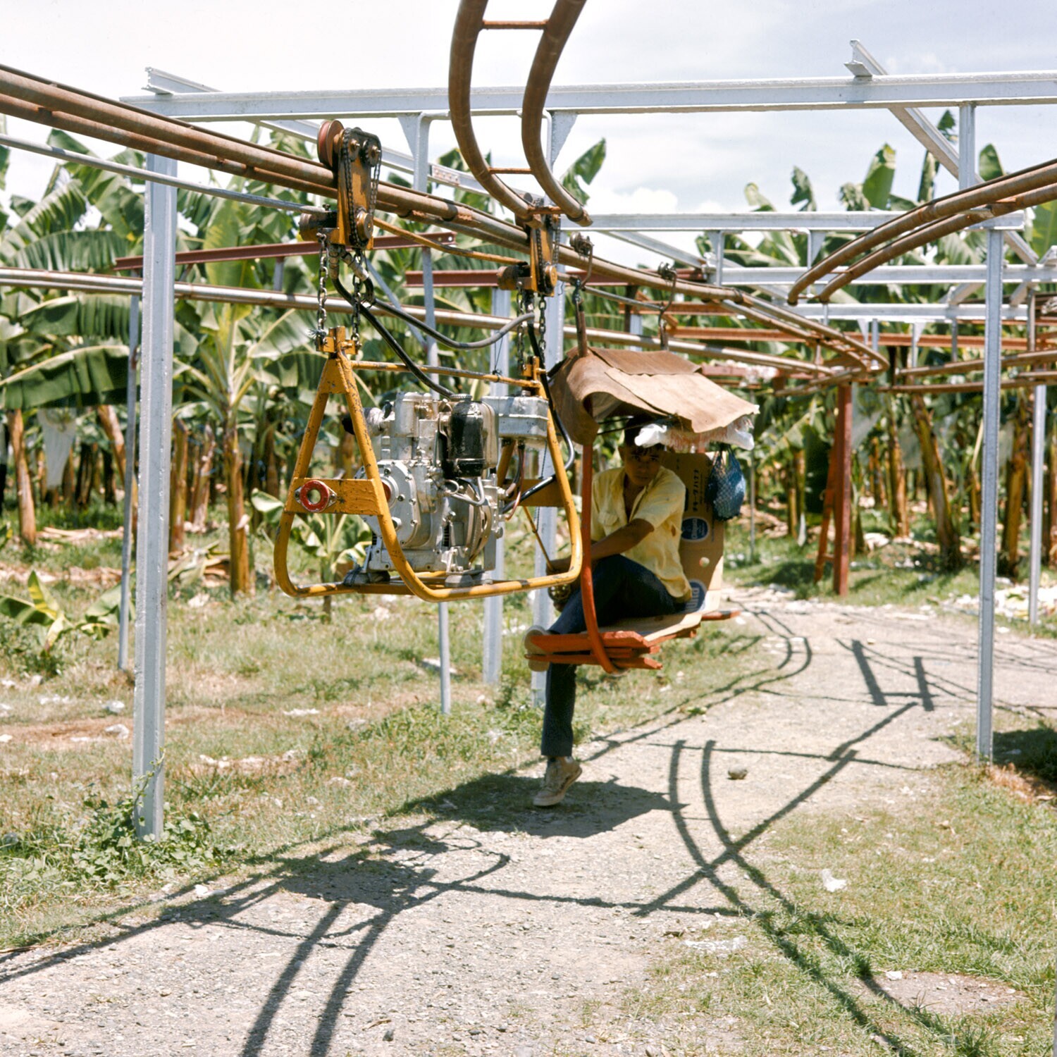 Aandrijfmotor van de kabelbaan waaraan de bananentrossen getransporteerd worden. Stanfilco (Standard Fruit Company). General Santos, Mindanao.