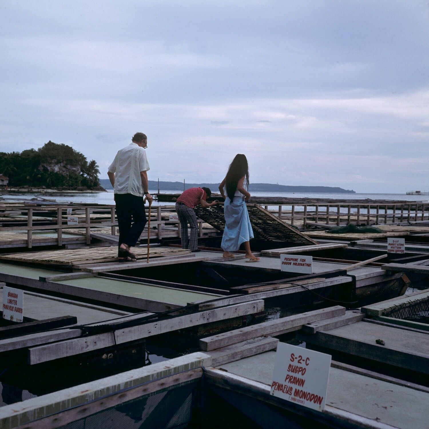 Parelfarm bij Davao, Mindanao. Met leefbakkencomplex t.b.v. diverse zeeorganismen.