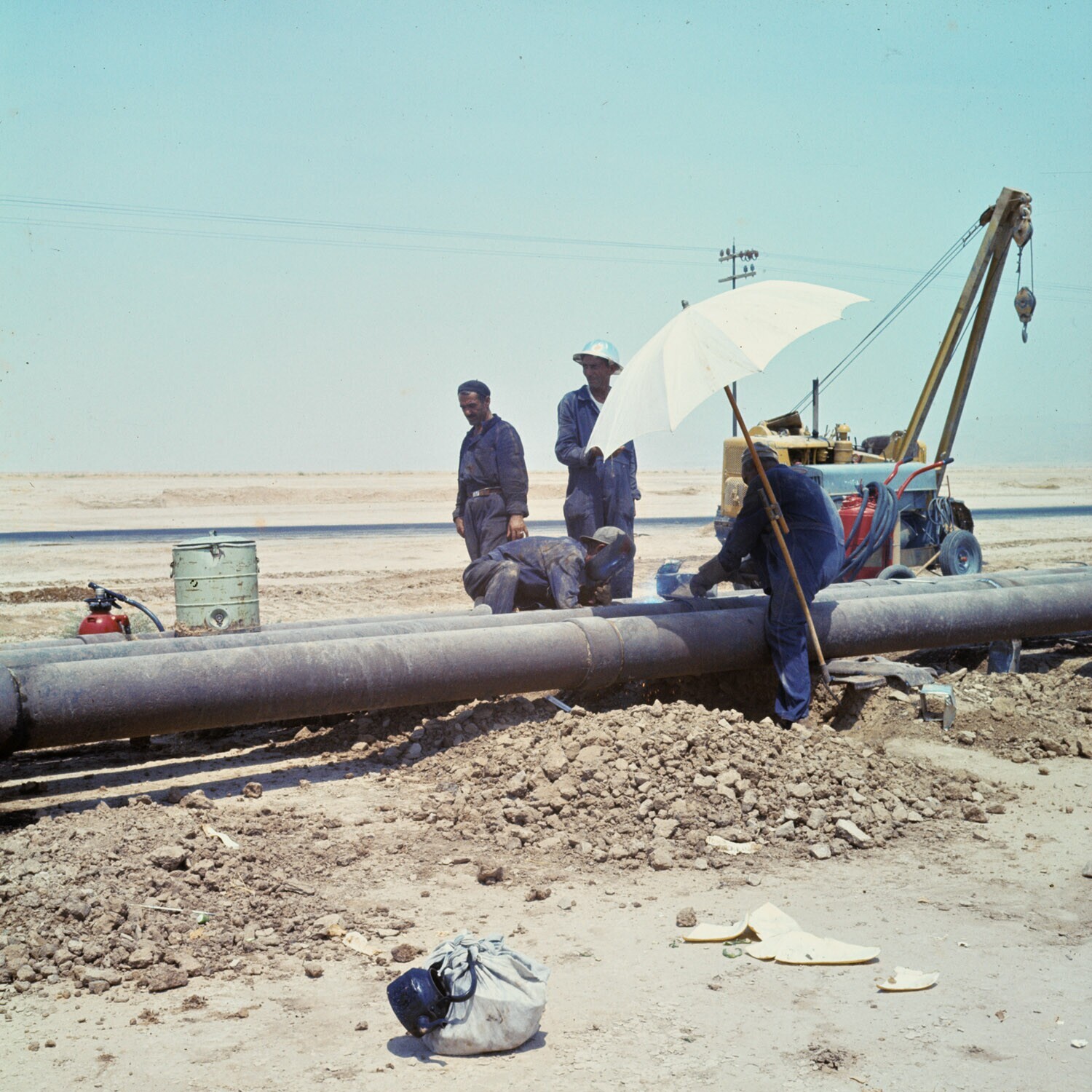 Werk aan de pijpleiding bij Ahwaz in Iran
