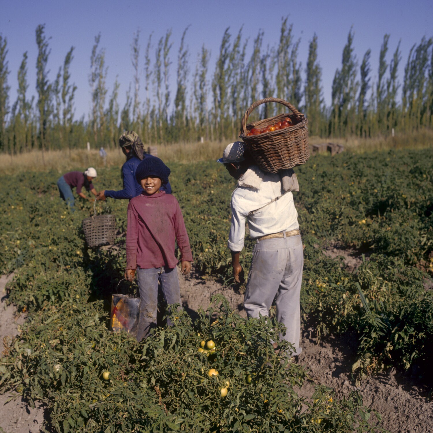 Gen. Roca. Kinderen helpen met de tomatenoogst.