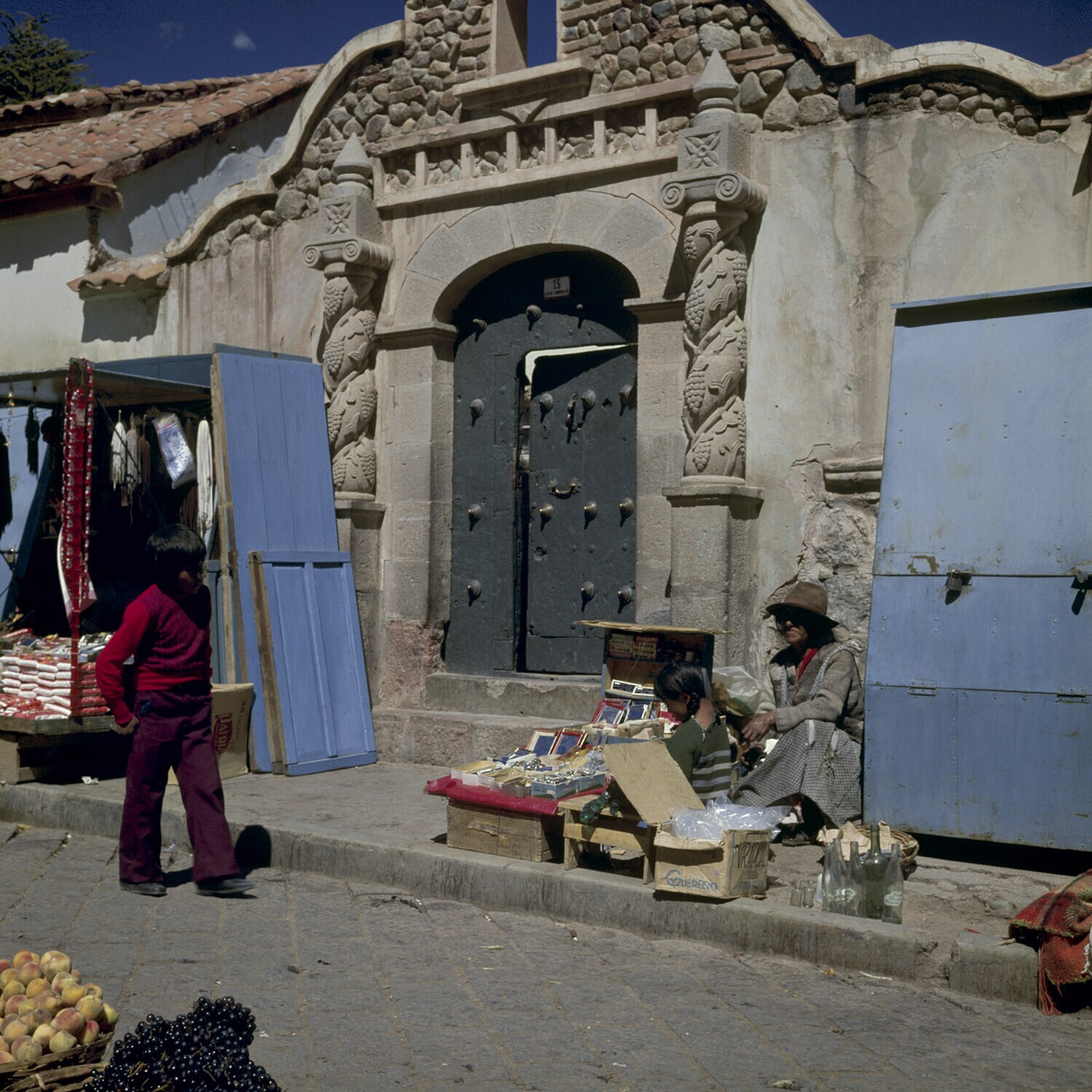 Straatverkoop voor een prachtig bewerkte huispoort uit de koloniale periode .