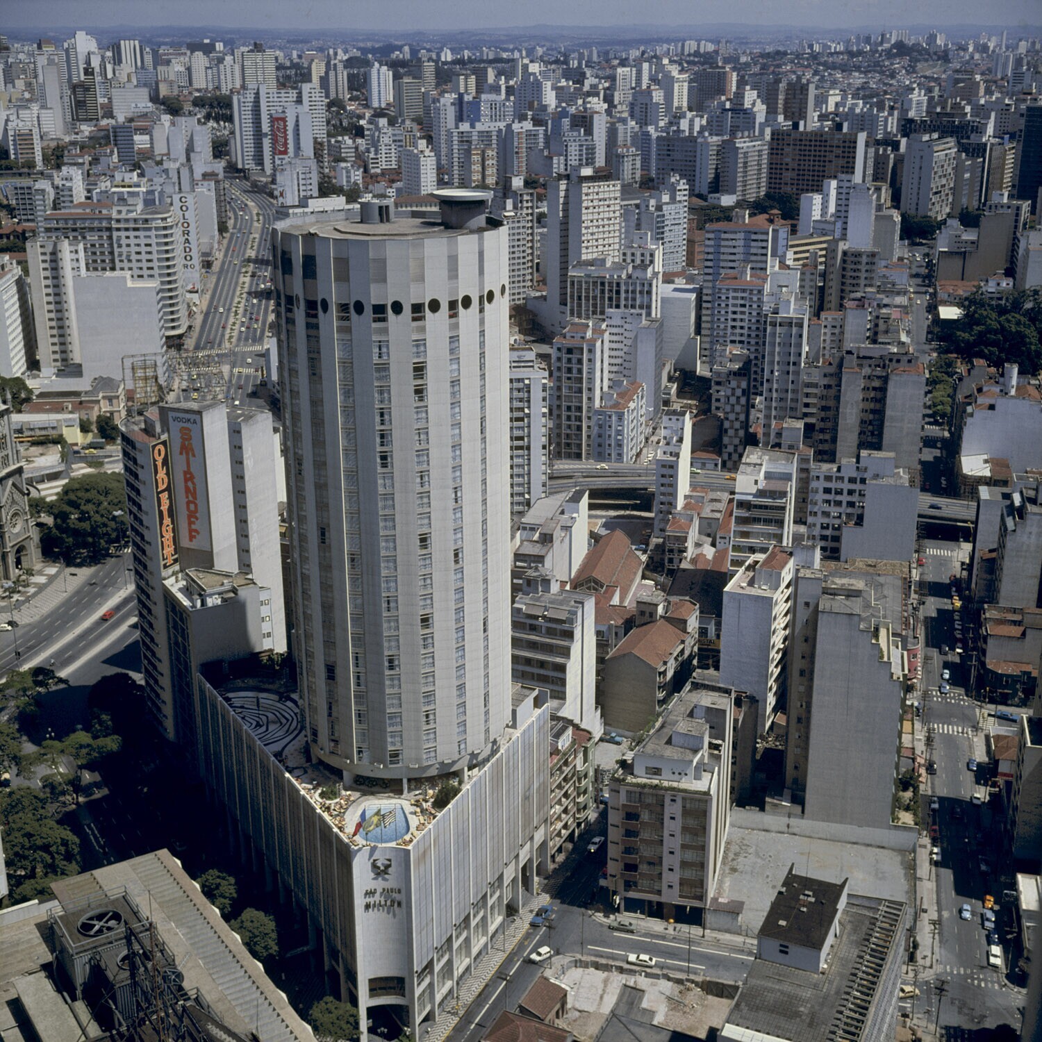 Stadsbeeld Sao Paulo ( groot Sao Paulo - 11 miljoen inwoners ) gemaakt vanaf de 46e verdieping van het gebouw edificio Italio.