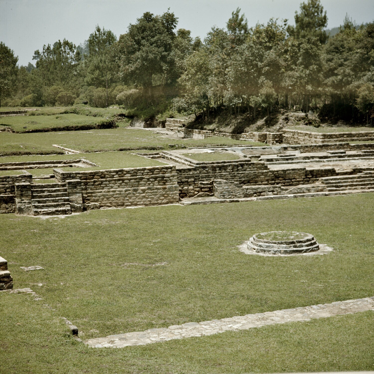 De precolumbiaanse ruïnes van Iximche, van 1470 tot 1524 de hoofdstad van het Kaqchikel Maya koninkrijk
