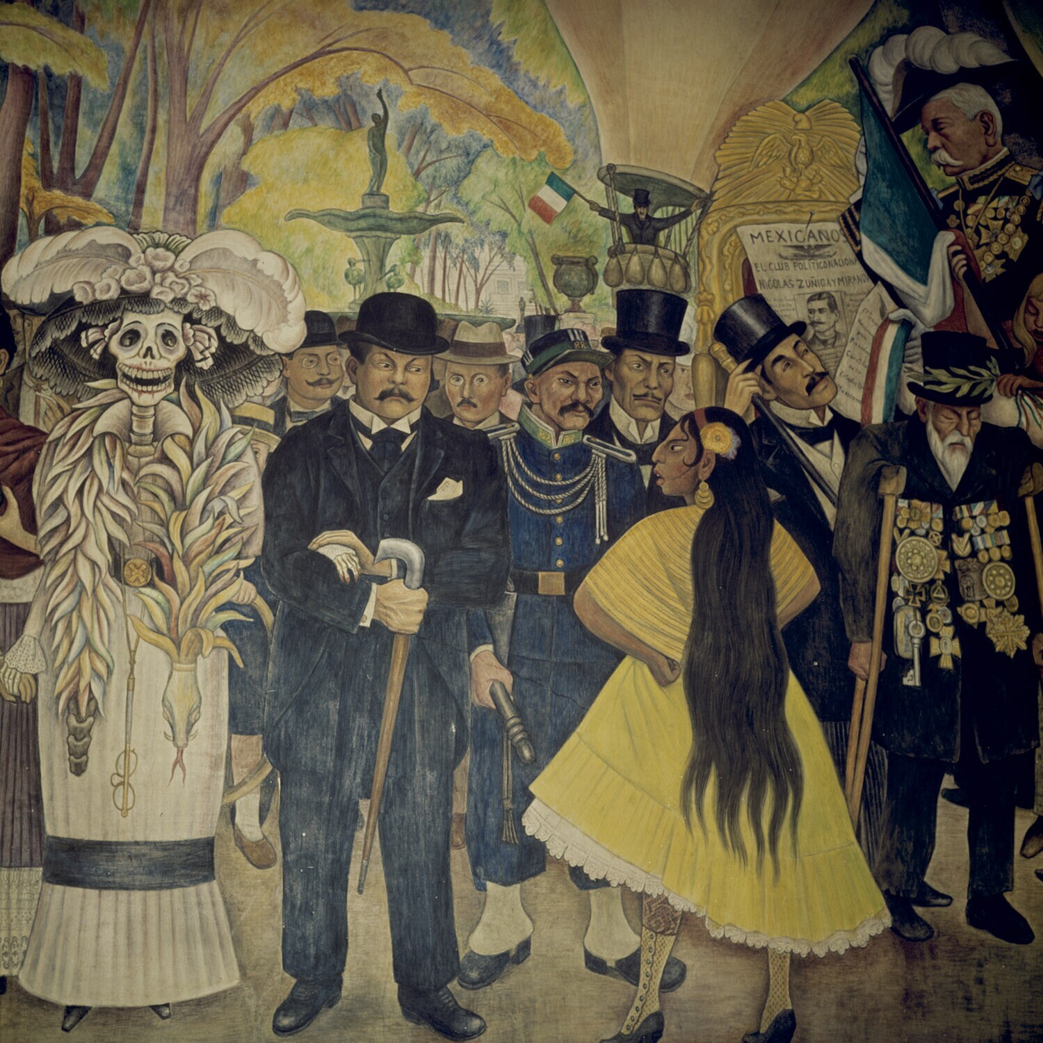 Detail van de muurschildering van Diego Rivera: 'Zondagnamiddagdroom in het park Alameda' in het Prado Hotel, datering 1947/48.