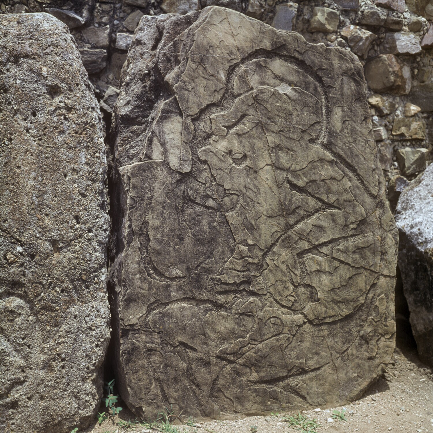 De ruines van Monte Alban.Details van de Los Danzant es. Prov.Oaxaca.