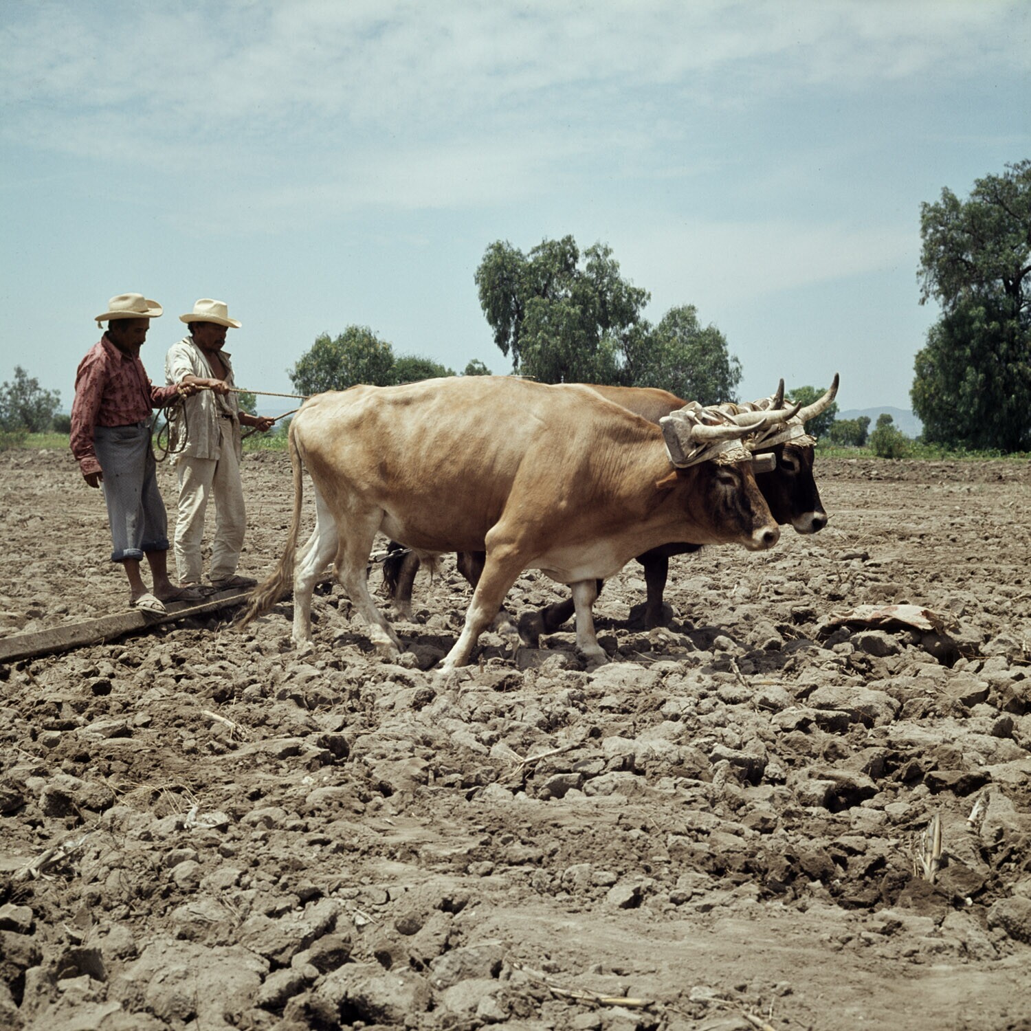 Ploegende boeren ,de rode aarde bij Oaxaca