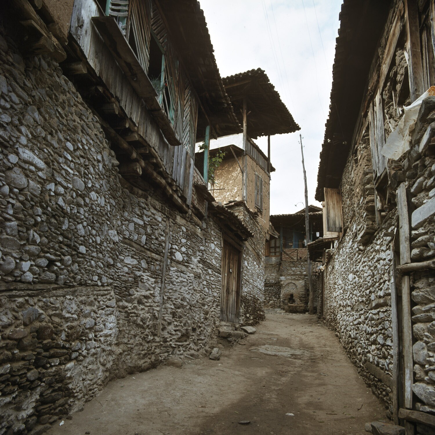 Het dorp Birgi een bergdorp met woningen gebouwd van natuursteen, welke om de zoveel lagen afgewisseld worden met horizontale balken, de bovenverdieping is soms van hout, dan wel van steen opgetrokken