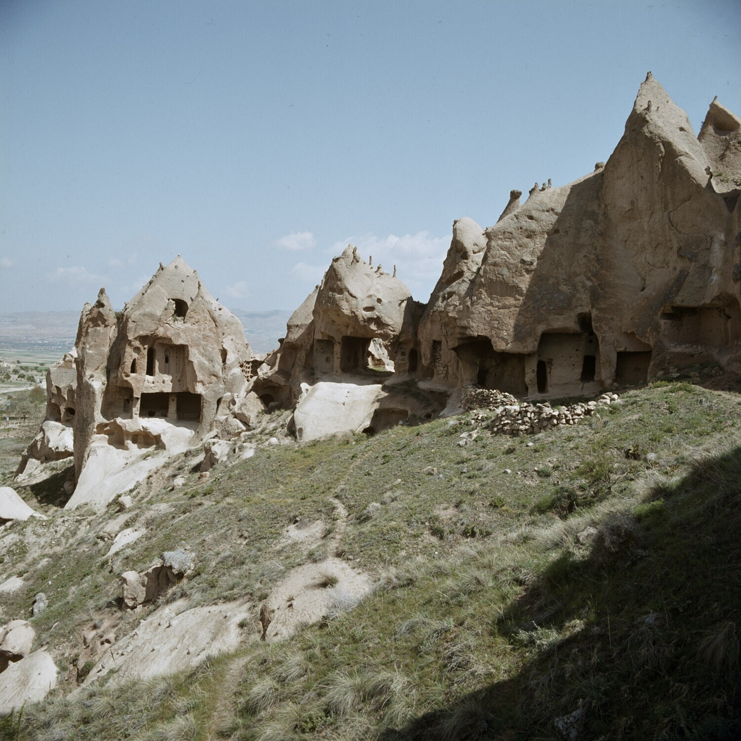 Het verlaten dorp Zelve van rotswoningen aan de Anatolische Hoogvlakte nu een toeristische attraktie