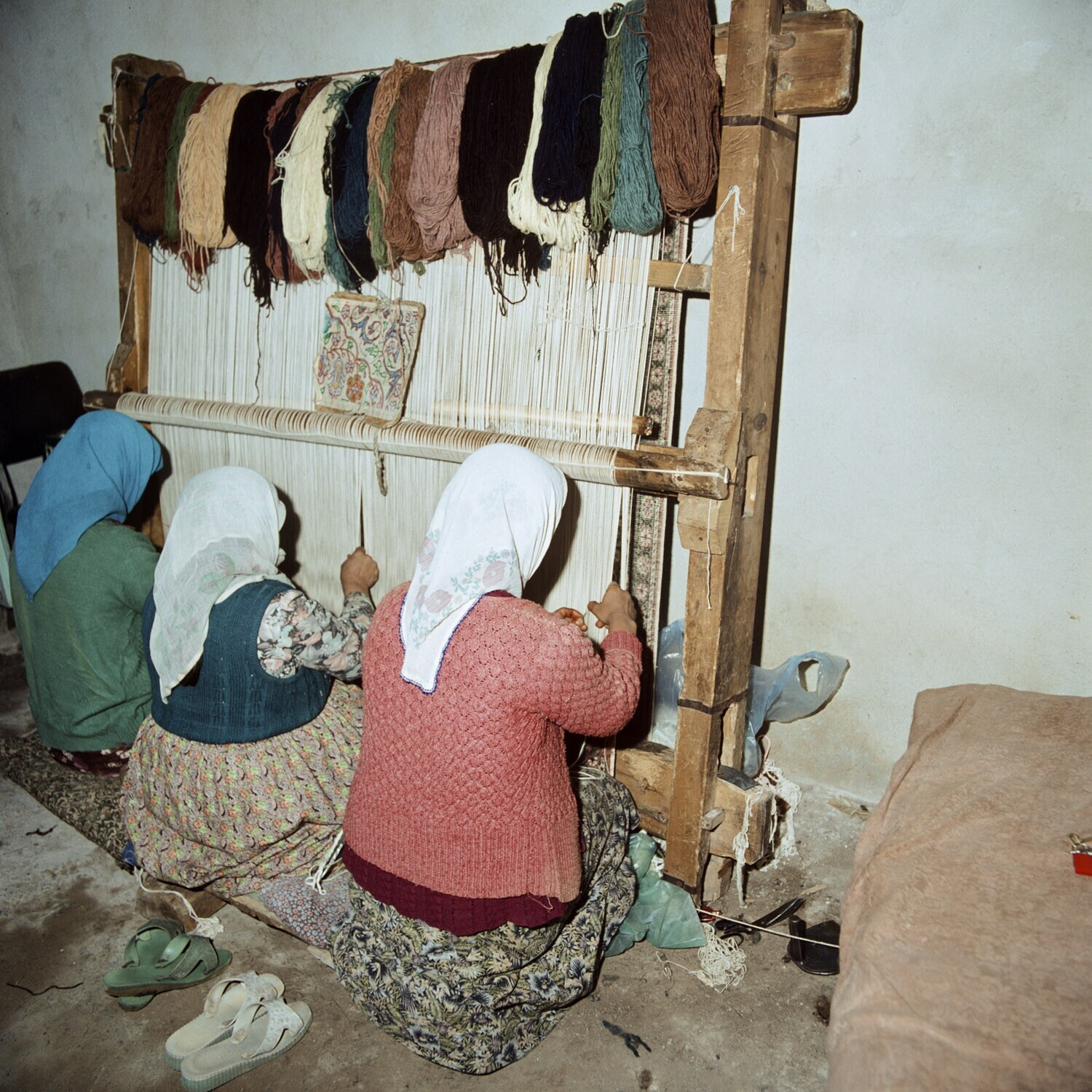 Kayseri, dorpsvrouwen bezig met het knopen van een tapijt