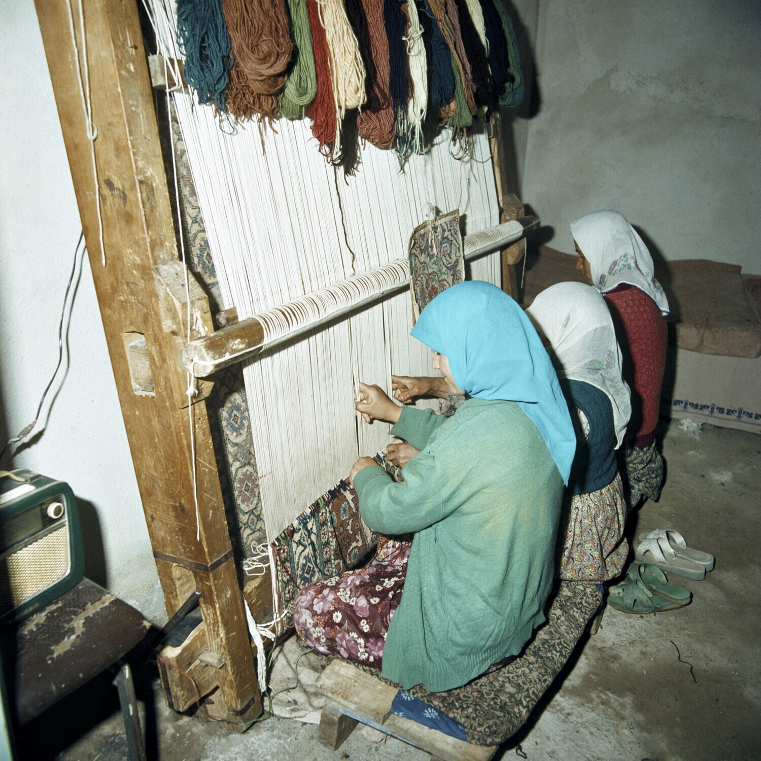 Kayseri, dorpsvrouwen bezig met het knopen van een tapijt