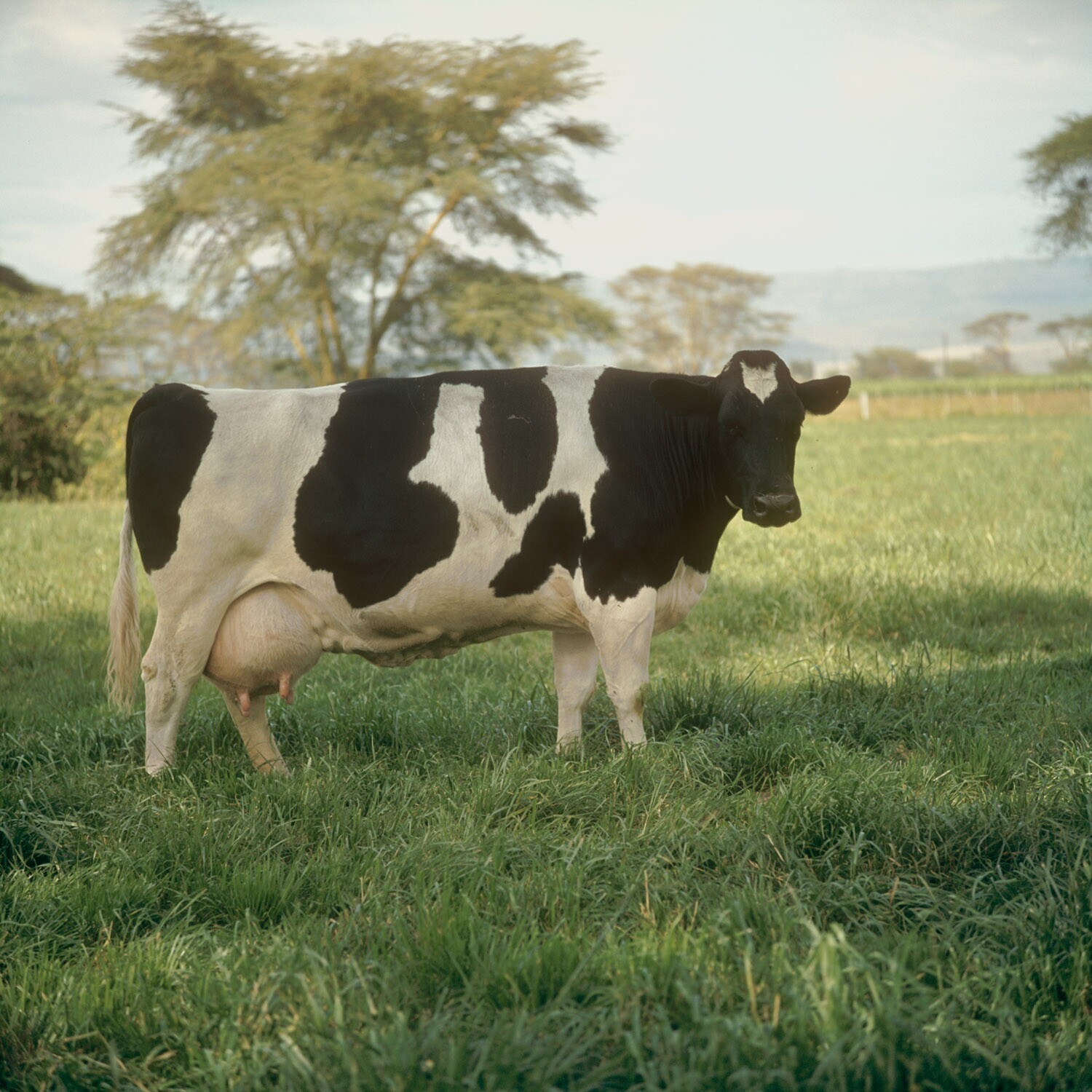 De Nederlandse Friese kampioenskoe Mina in de weide op het Naivasha Dairy Research Station