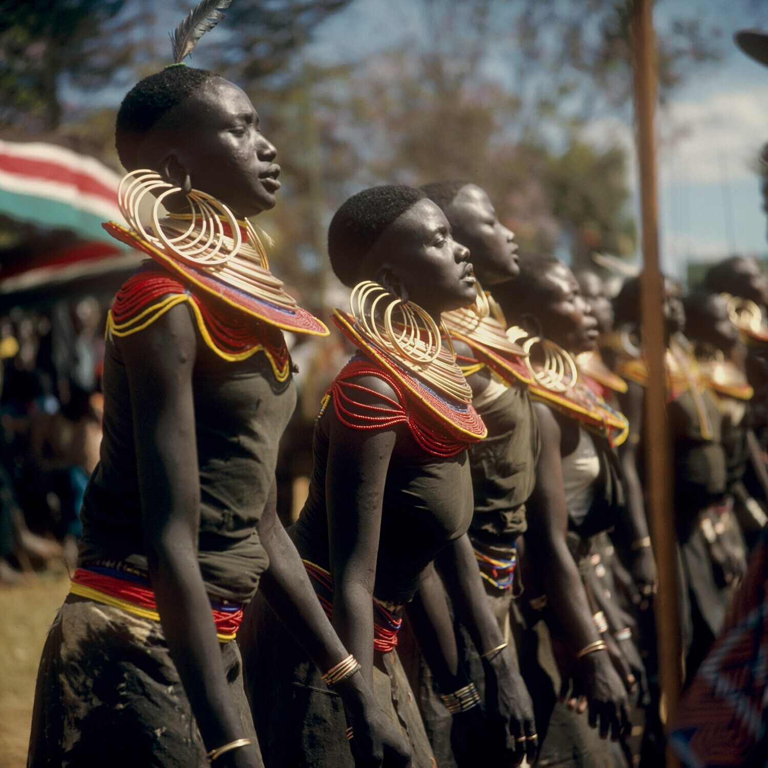 Pokot vrouwen dansen tijdens de feestelijkheden ter gelegenheid van tien jaar onafhankelijkheid van Kenya
