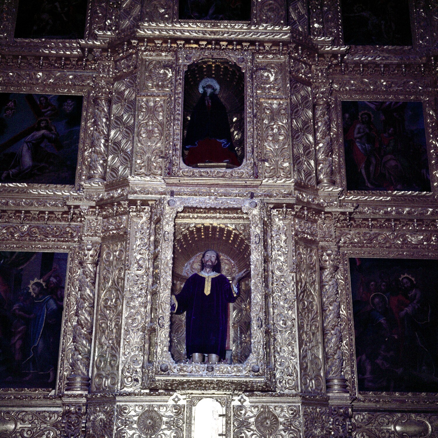 Prov.Oaxaca, Ixtlan. Het interieur van de Basilica San Tomas.