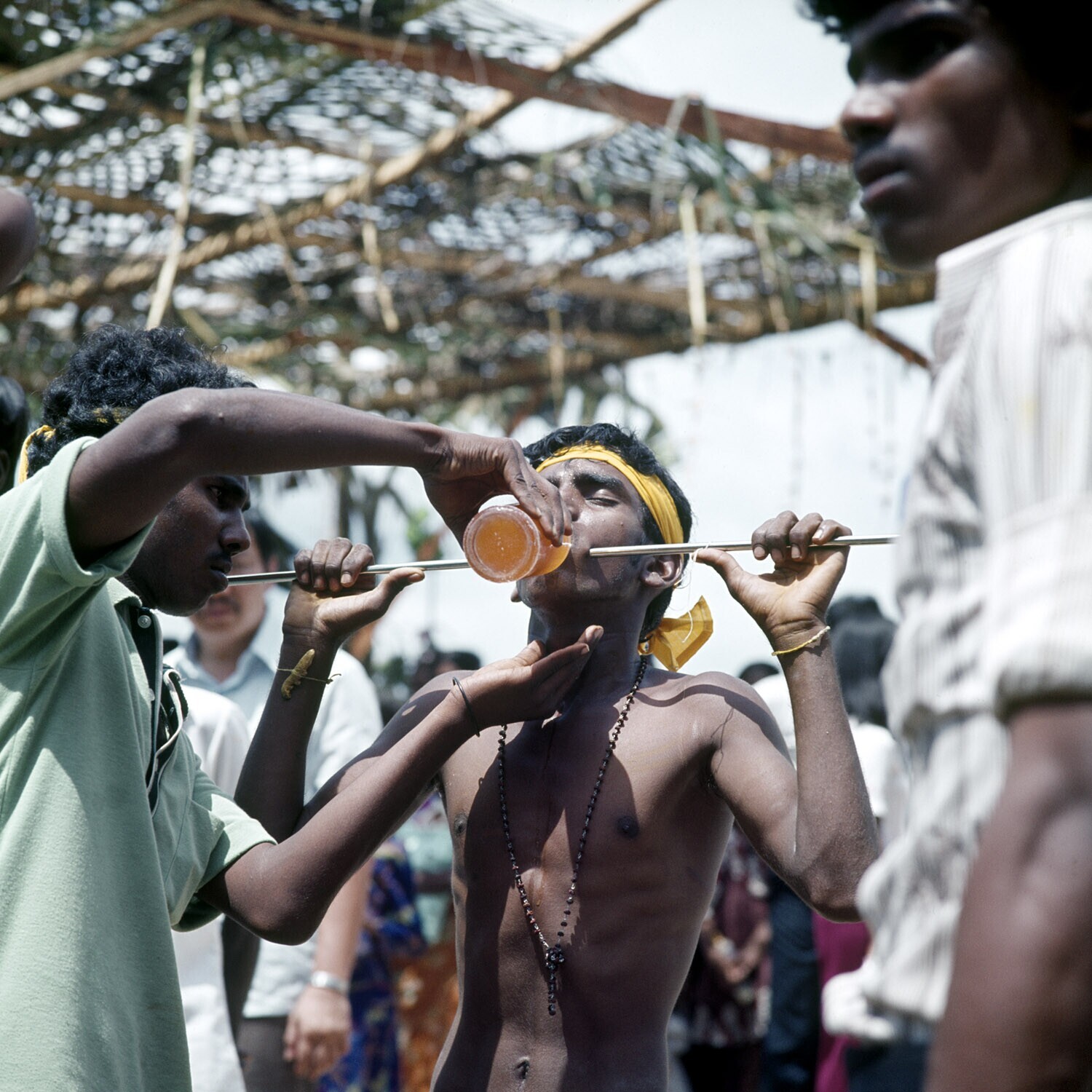 Taipusam feest de boetedoening van een Hindoestaanse jongen.