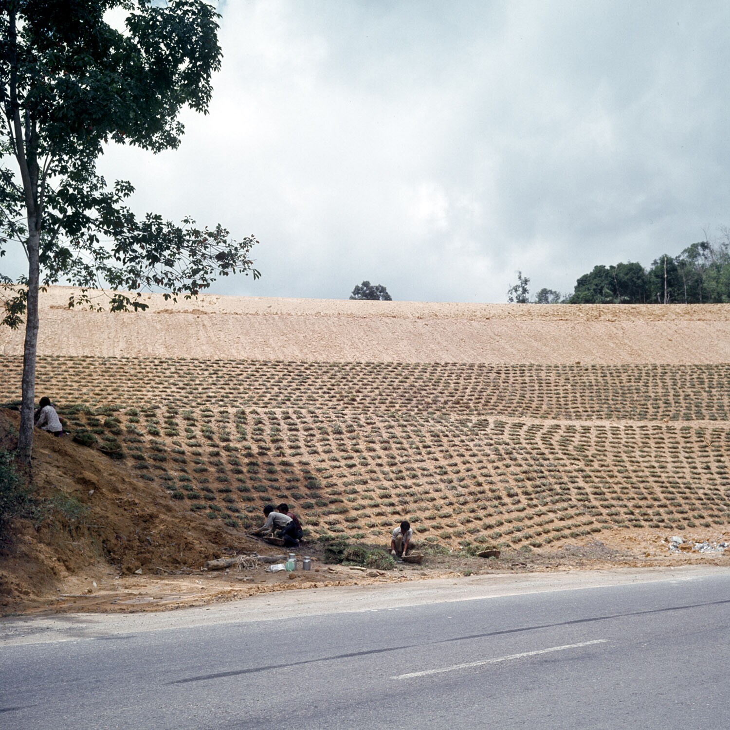 Het tegengaan van erosie door grasaanplant ( tussen Bentong en Kuala Lumpur ).