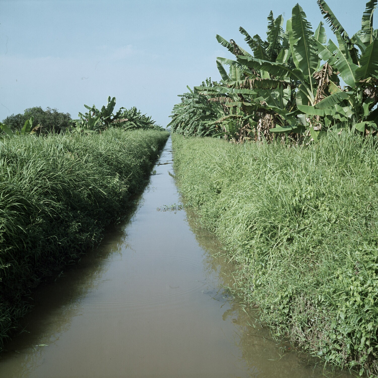 Afvloeiingskanaal in een rijstveld, Telok Anson.