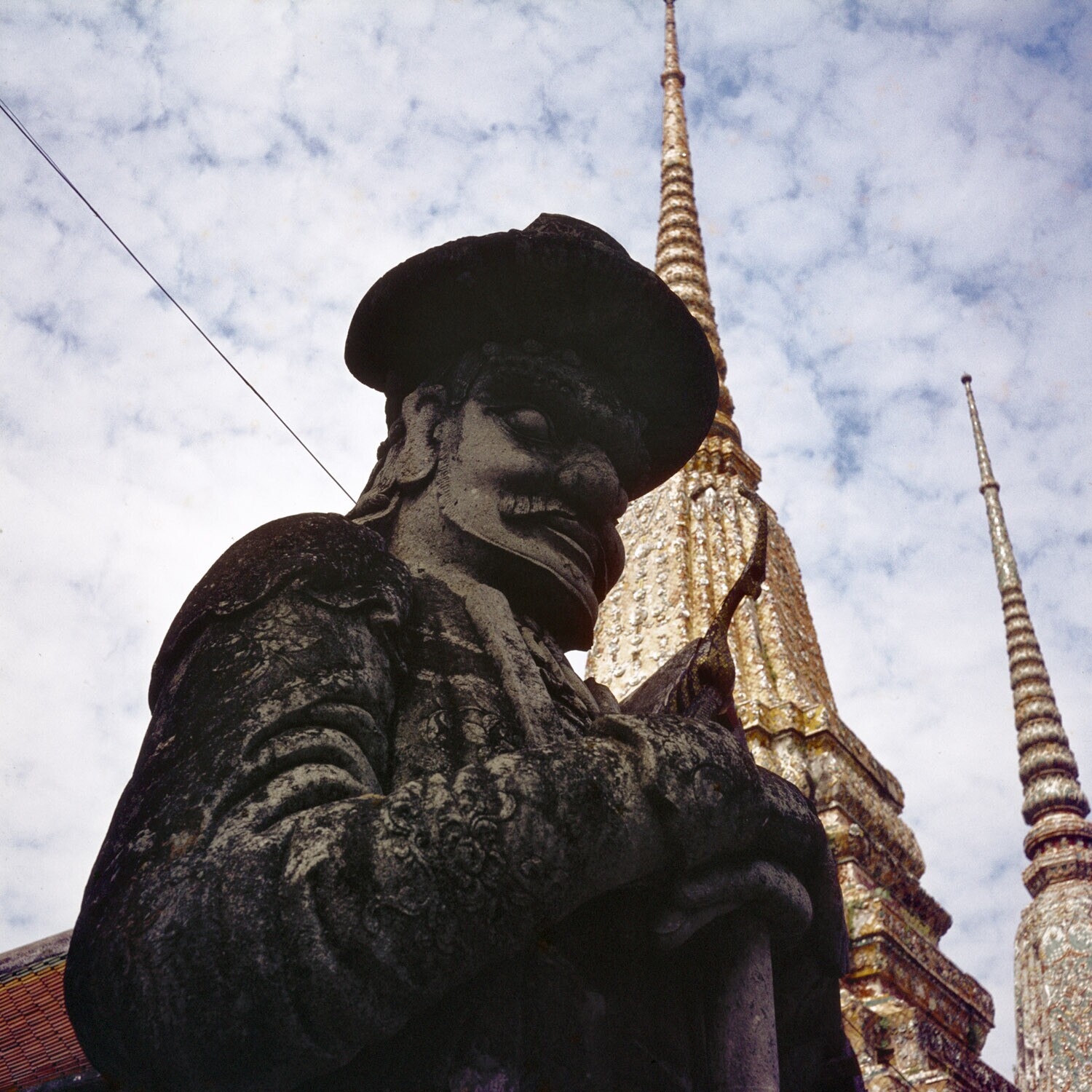 Poortwachter en chedis van de tempel Wat- Po in Bangkok