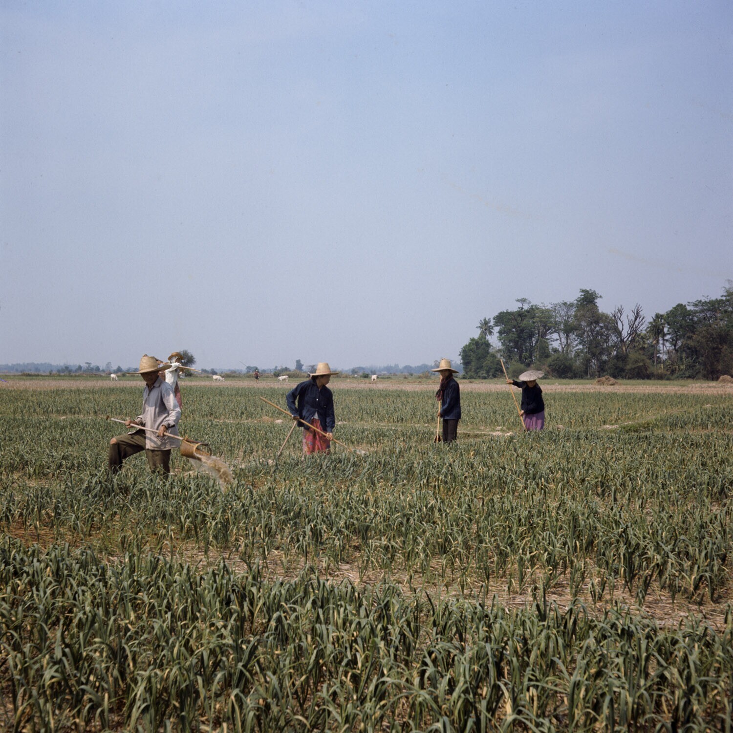 In de streek rond Chiang Mai iT door irrigatie de verbouw van 2e gewassen mogelijk m.b.v. een schepmand wordt het bevloeiingswater over een uienveld gesproeid