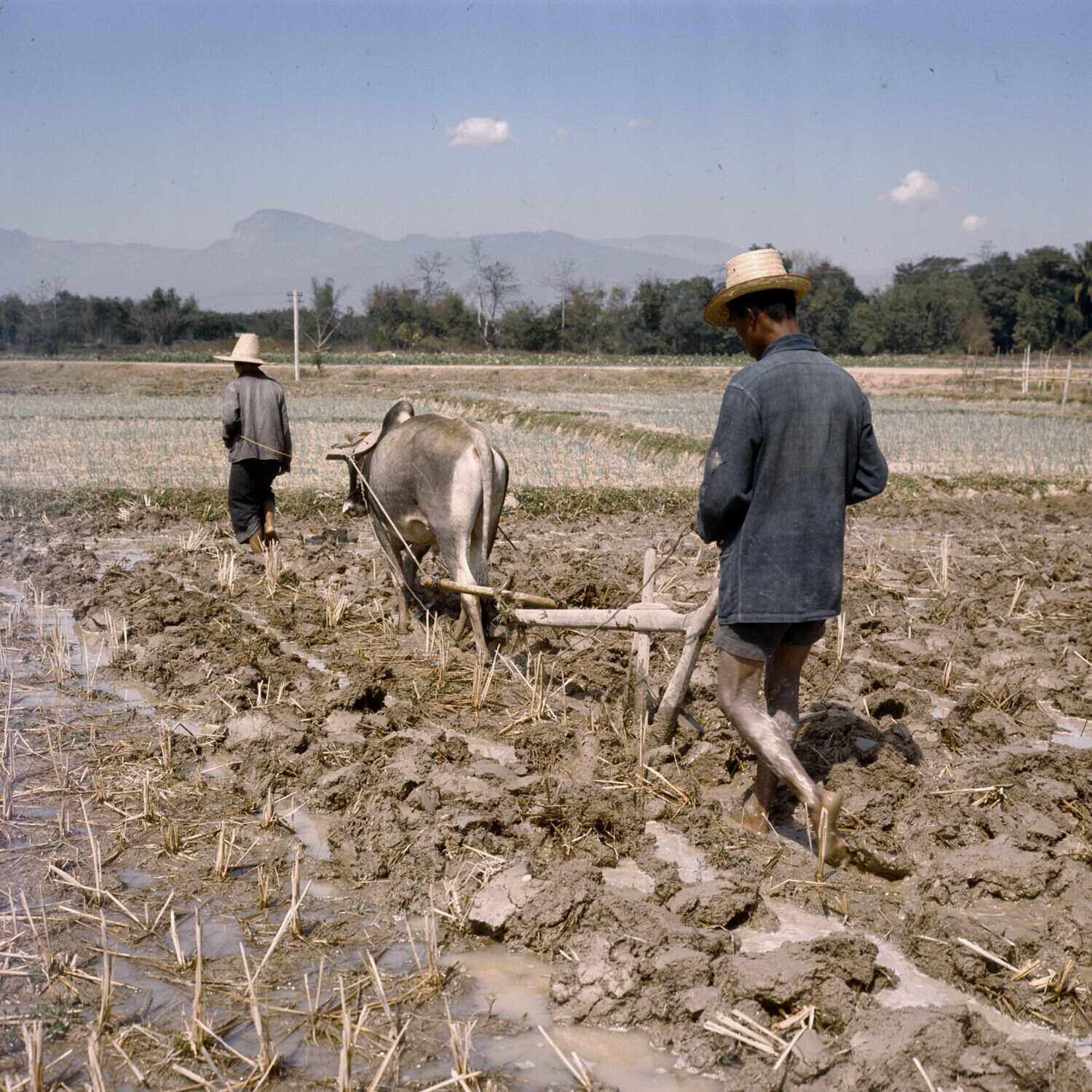 Omploegen van een rijstveld