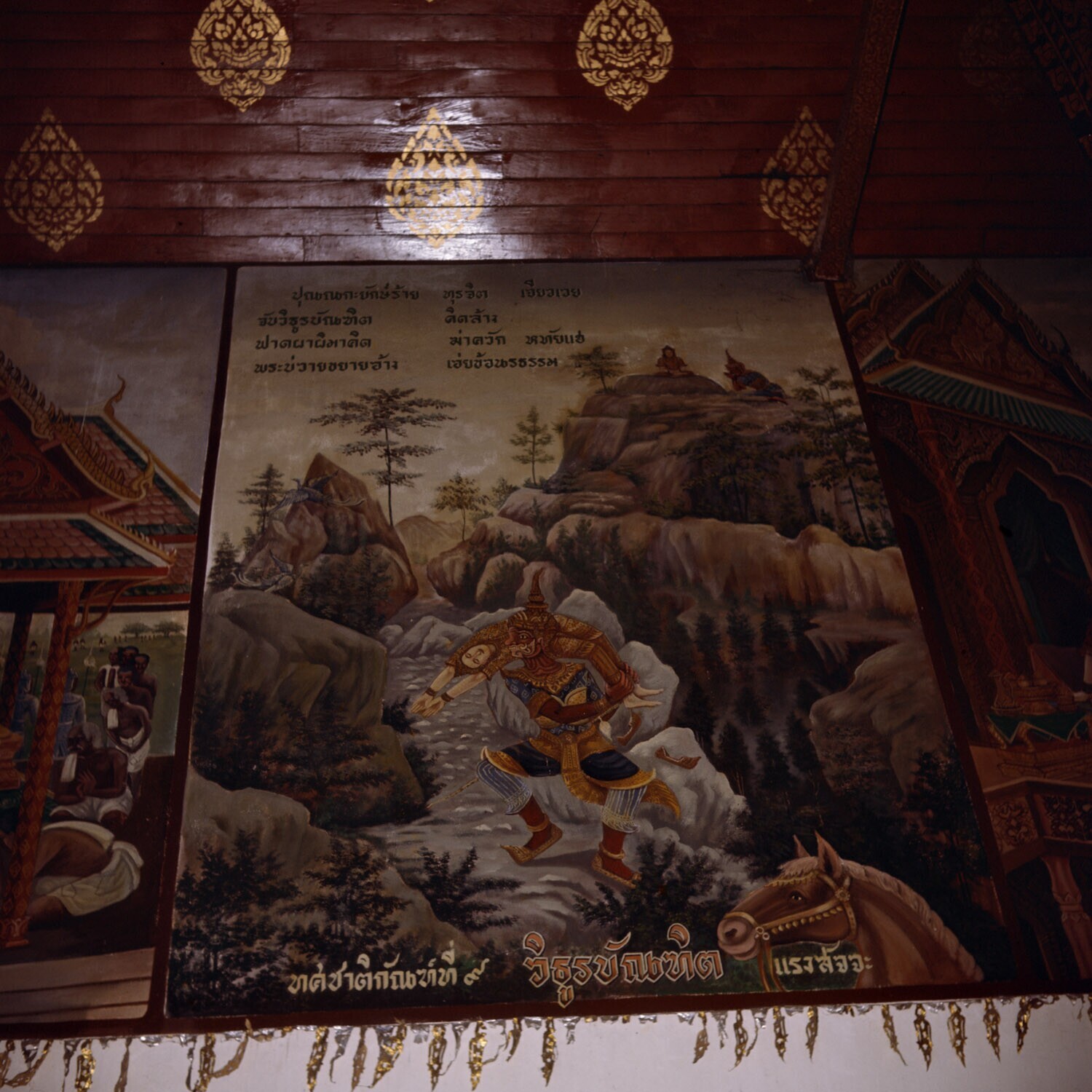Muurschildering van een Wat in Chieng Mai voorstellende de Roof van Sita uit het epos RamakiTn (=Thaise naam voor Ramayana)