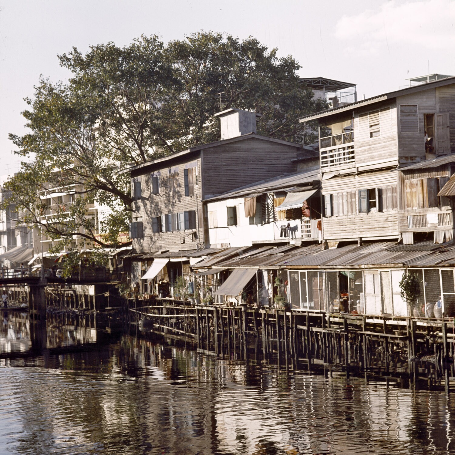 Woonhuizen langs TTn van de klongs in Bangkok
