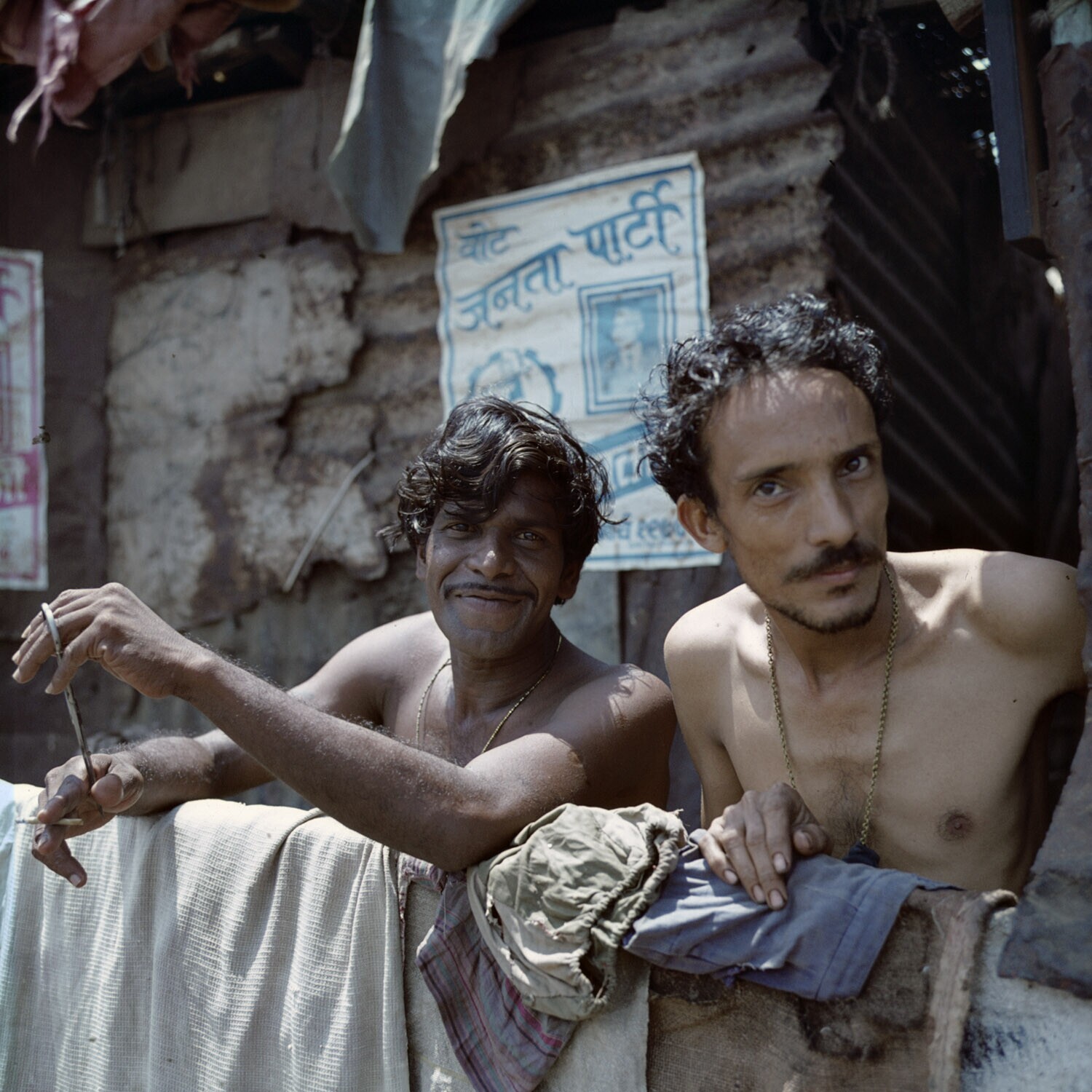 Bewoners van de arme wijk Hanuman-TTkti in Mumbai