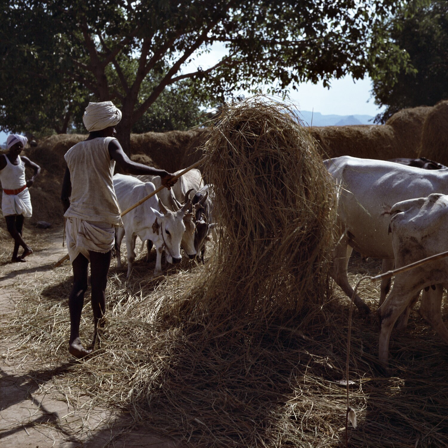 Het dorsen van rijst in klein dorpje buiten Madurai