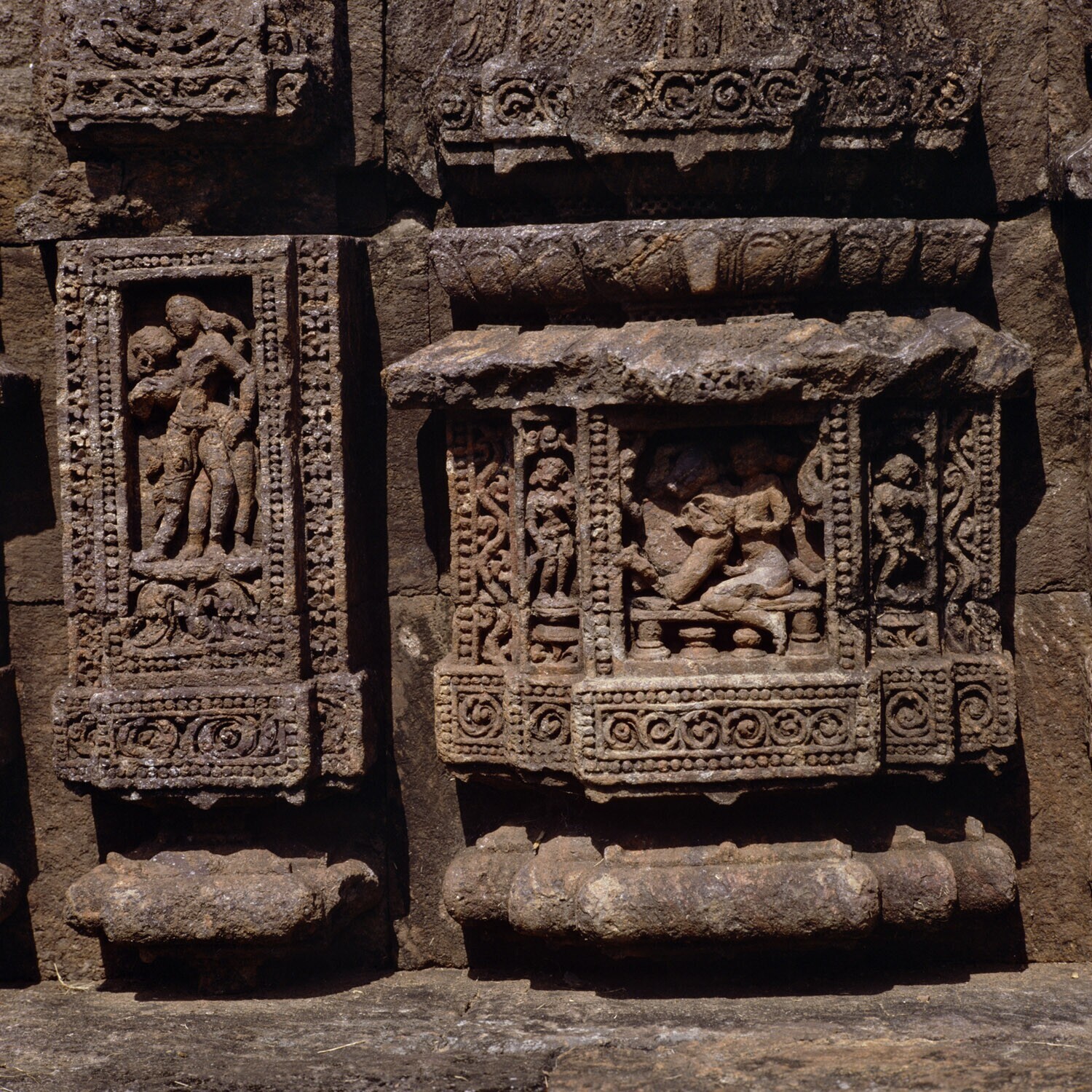 Details van de zonnetempel van Konarak met erotische voorstellingen