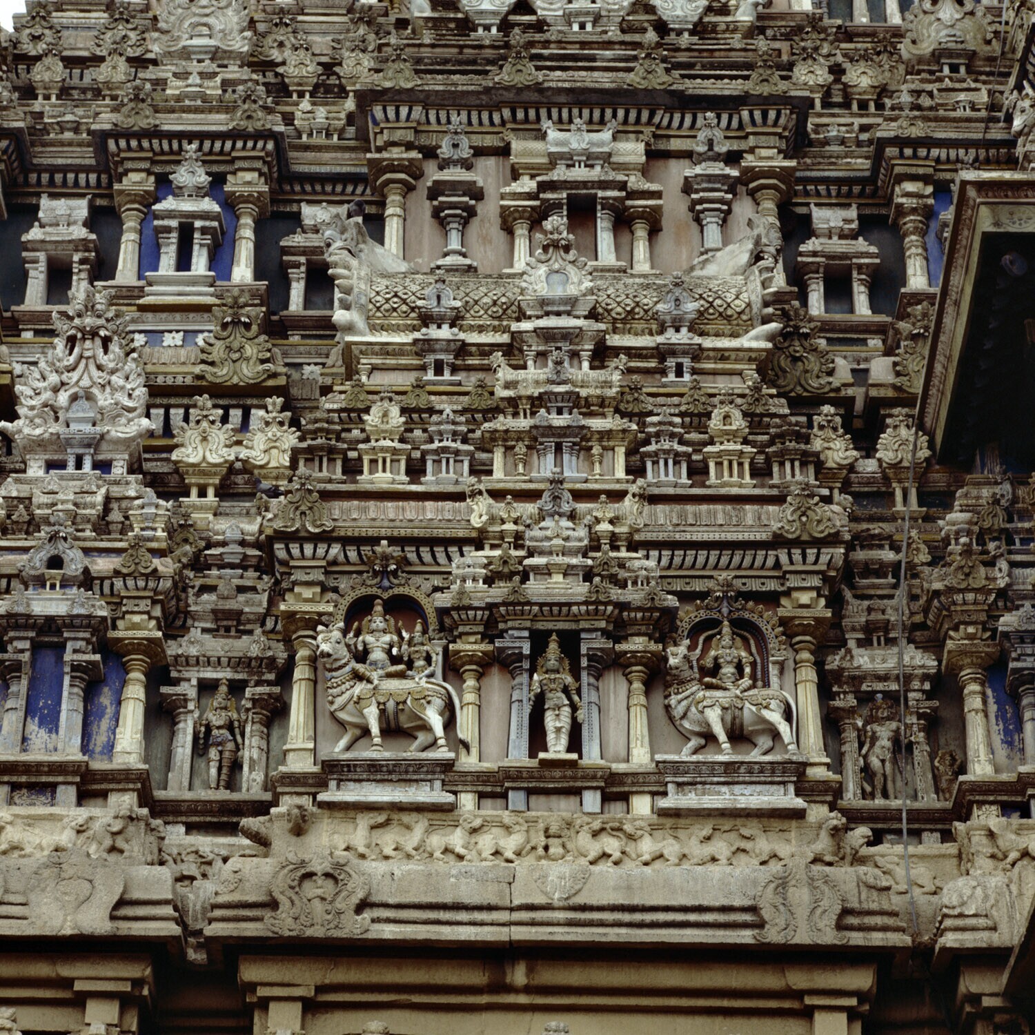 ETn van de rijkbewerkte Gopurams van de Menakshi tempel van Madurai