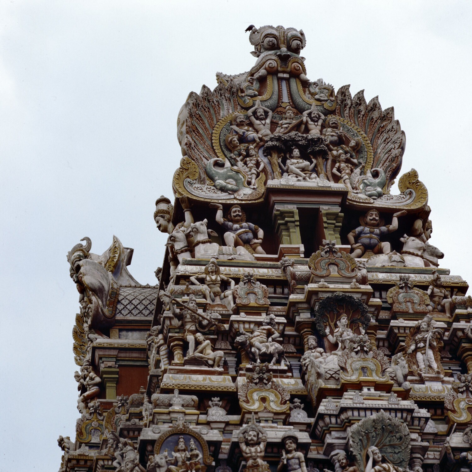 Menakshi tempel complex te Madurai, close up met veel sculpturen
