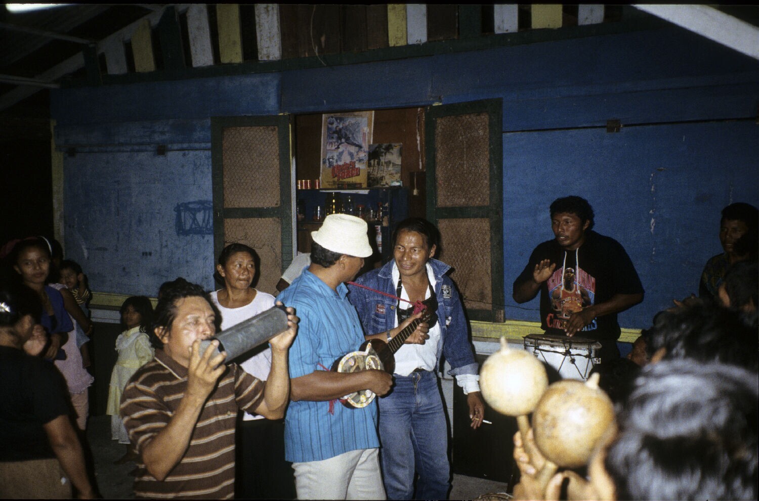 Kawina-muzikanten tijdens het dansfeest voor de proef