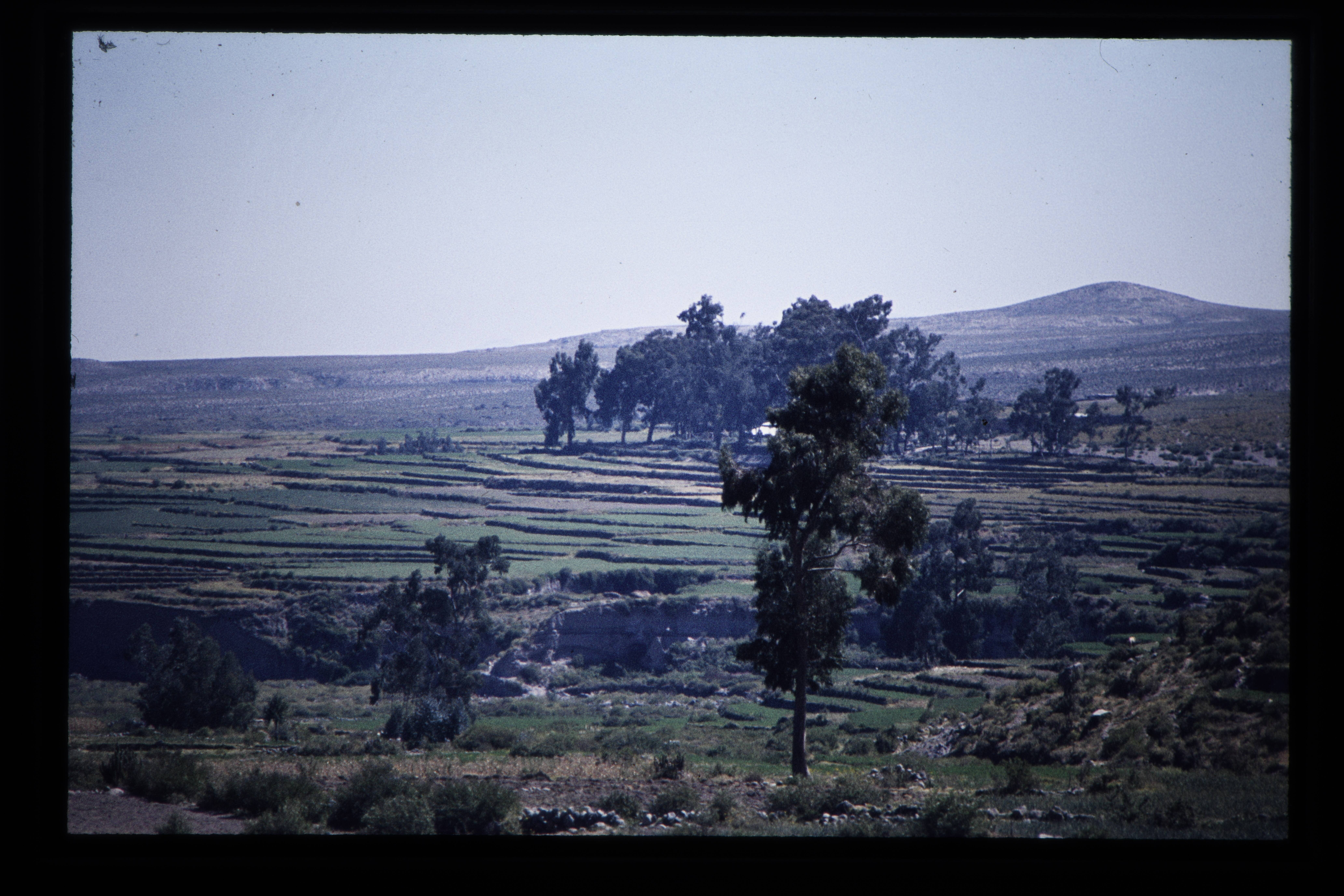 'Landschap tussen Puno en Juliaca, op de voorgrond een alfalfa veld.'