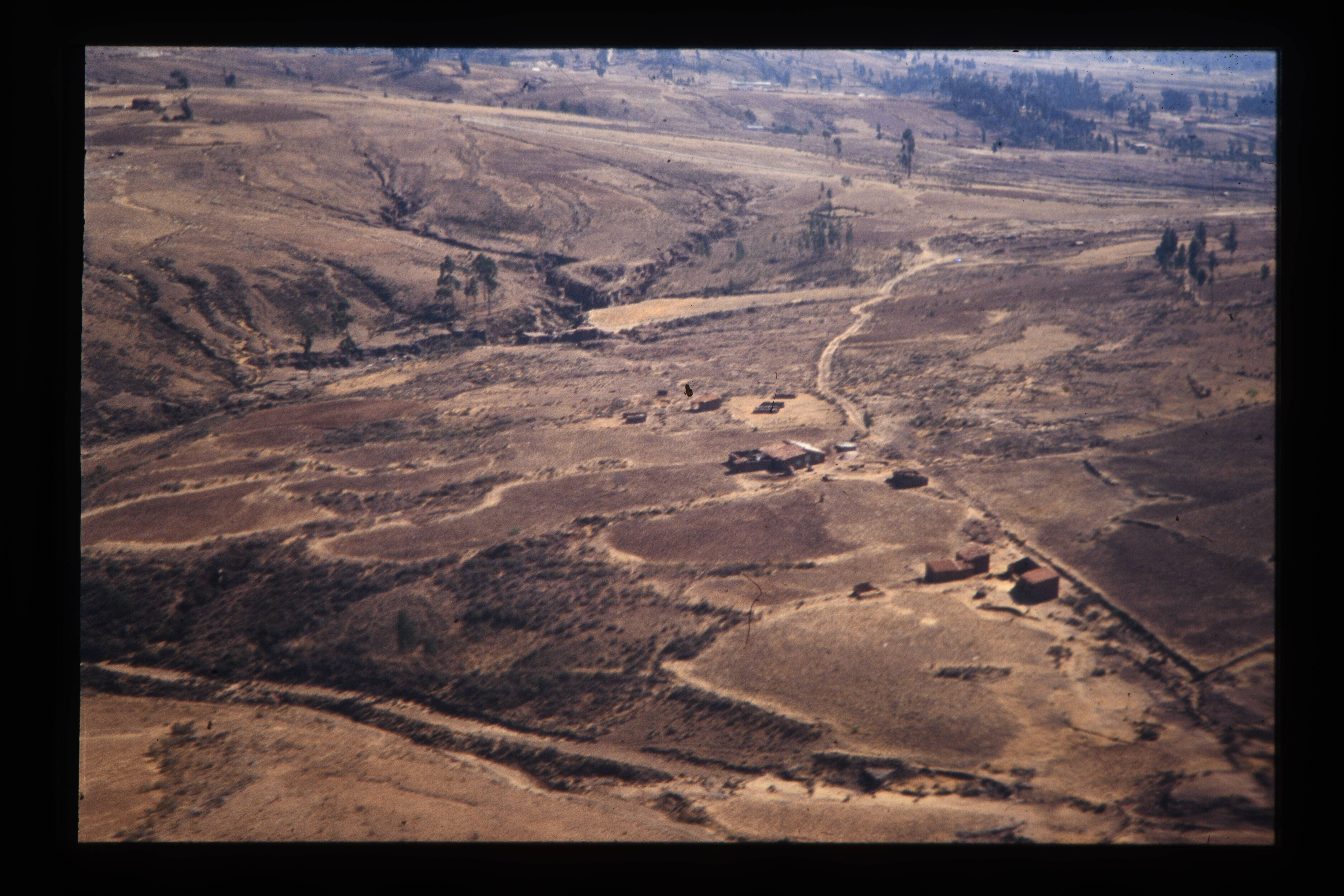 'Luchtopname van de aflopende Altiplano richting Sucre.'