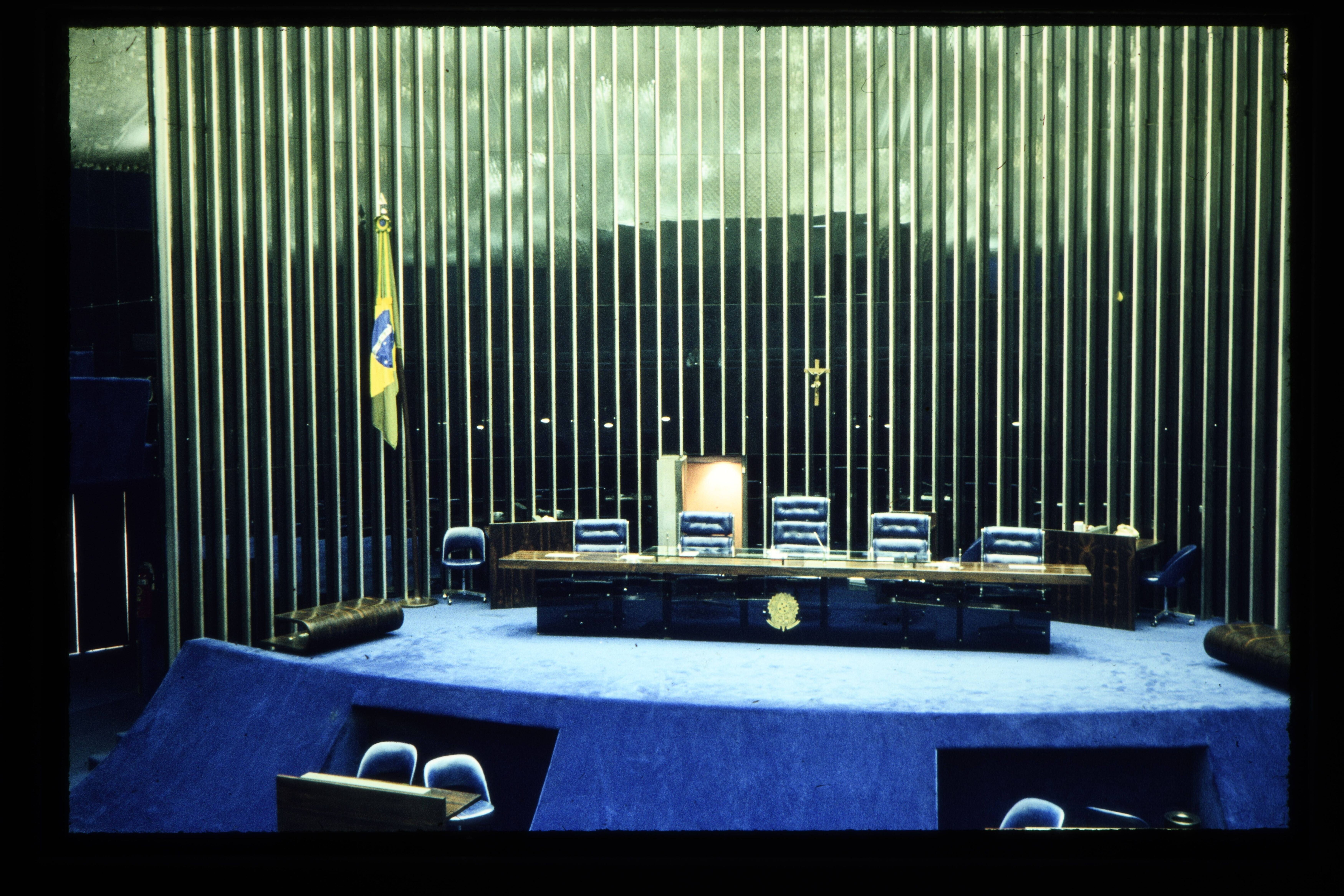 'Interieur senaatgebouw Brasilia, voornamelijk vergaderruimtes.'