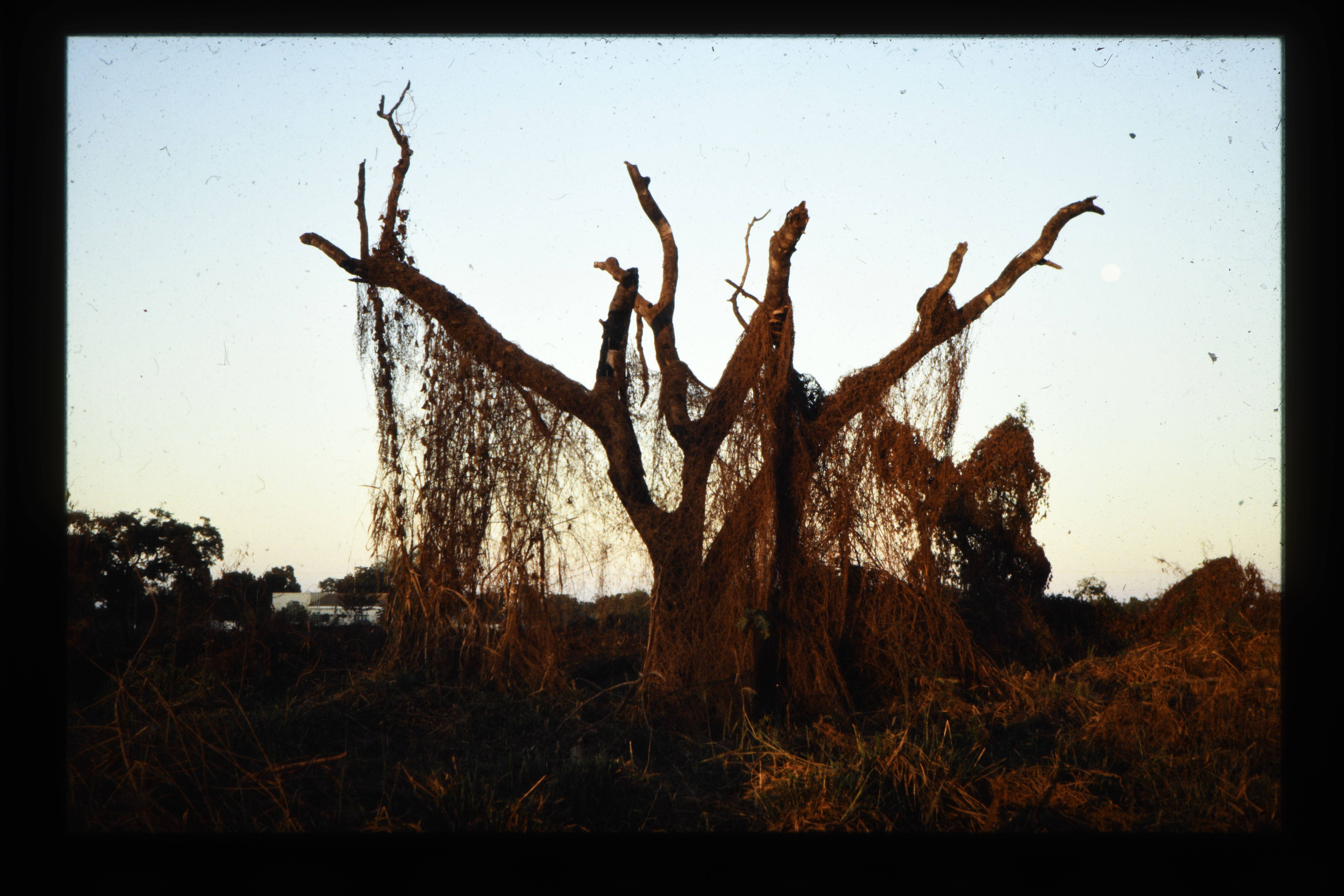 'Boom bij zonsondergang.'