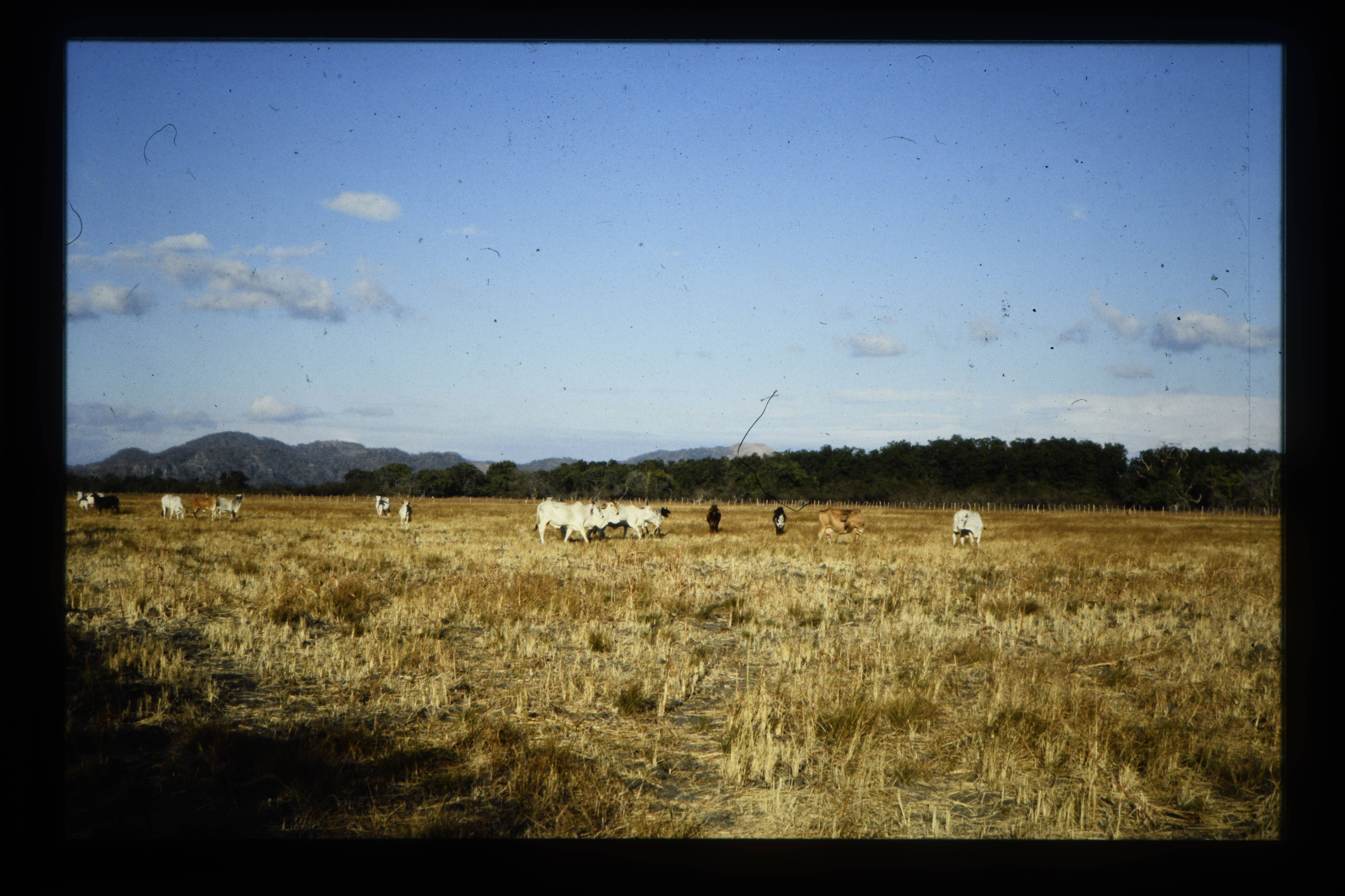 'Guanacaste provincie, Nicoya-Schiereiland, Pozo de Aqua, Chicontepec Project (vluchtelingen ex- El salvador). bouwen hier aan een nieuw bestaan. Uitgedroogde, verzoute aan rivierinudatie blootgestelde vertisol-type grond.'