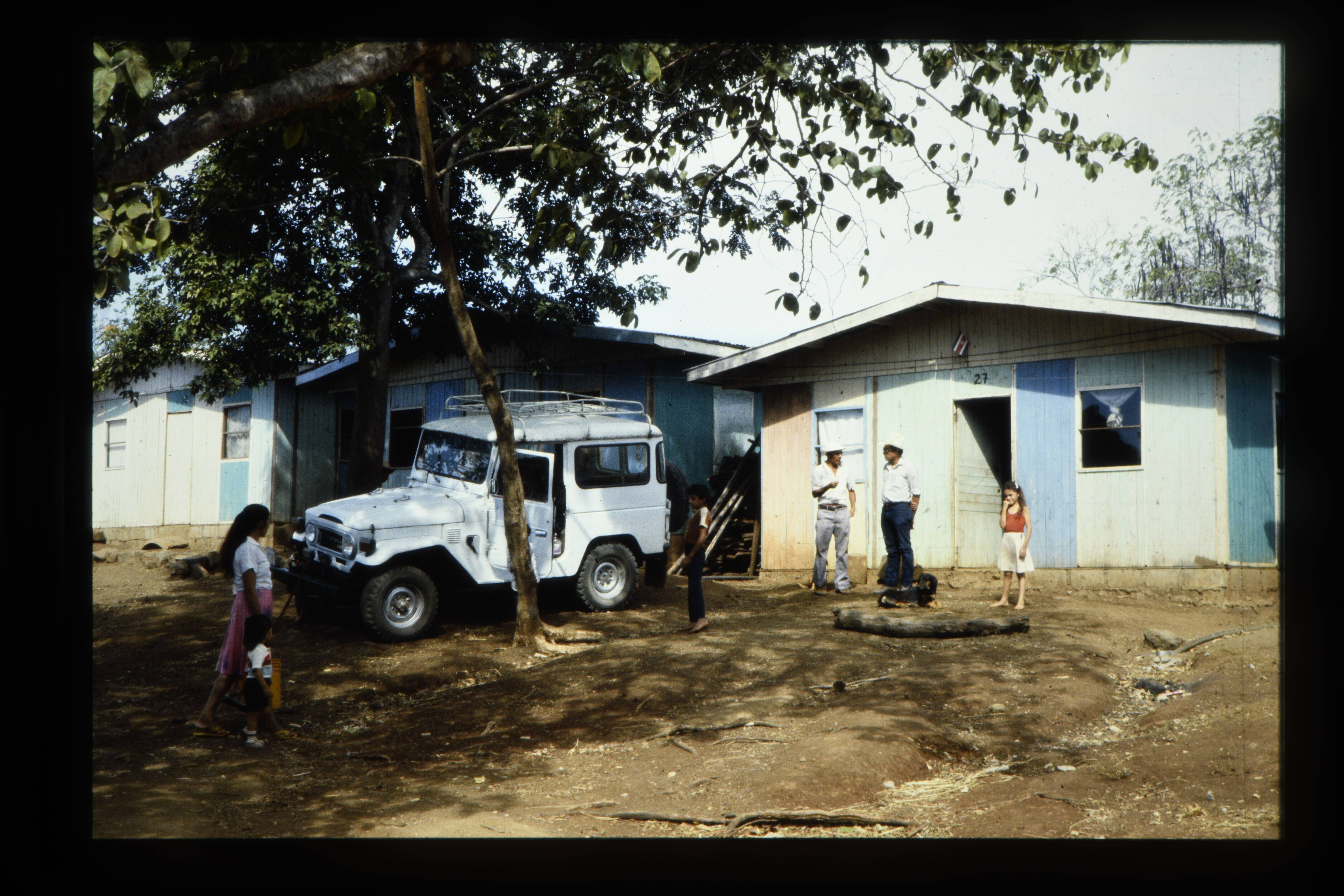 'Guanacaste provincie, Nicoya-Schiereiland, Pozo de Aqua, Chicontepec Project (vluchtelingen ex- El salvador). bouwen hier aan een nieuw bestaan. Uitgedroogde, verzoute aan rivierinudatie blootgestelde vertisol-type grond.'